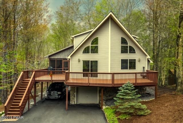 A very special 3BR 2BA prow front chalet in The Hideout . Get started with all the value added features beginning with great curb appealing landscape, paved drive and stone faced lower level. Tongue and grooved screened porch is carpeted and overlooks your wooded backyard and entertainment sized decking. You'll be thrilled with the unique system to protect the porch and its contents in the winter months. It goes up in a snap! Move on to easy main level living with an open floor plan from the kitchen with hardwood floors and granite counters and backsplash through to dining and great room area.