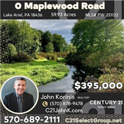 This 60 acres of fields, pond, streams and forest in the town of Lake Ariel could be the perfect place for your new home! Enjoy country living surrounded by the outdoors and the wildlife just a short drive to goods, services and entertainment!