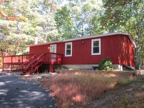 Nice Ranch style home for sale at Masthope Mountain! This house features 2 bedrooms, 1 bath, large living room with wood burning fireplace, 3 season porch/room, front and side decking, and a large unfinished basement! Laundry area is in the basement and there is a Bilco door for easy access to the outside and for carrying your ping pong table and other game room toys inside. Paved circular driveway makes parking easy. Come and enjoy all the wonderful amenities that Masthope has to offer and take in a lot of Mother Nature.