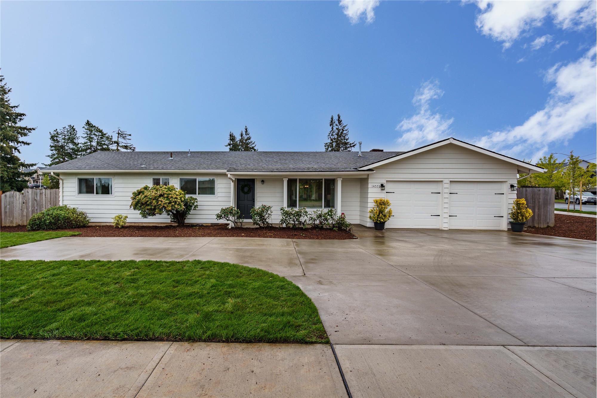 One-level living in a freshly updated mid-century home! Completely updated kitchen with new counters, cabinets, and stainless-steel appliances. Hardwood Oak floors throughout. Bonus family room with cozy wood fireplace leads to patio and newly fenced-in yard...don't miss the huge side yard! Lots of updates in the past 3 years to include new plumbing throughout, new furnace, remodeled bathrooms, new light fixtures, windows, driveway & sidewalks. Location is super quick to shopping, dining & I-205