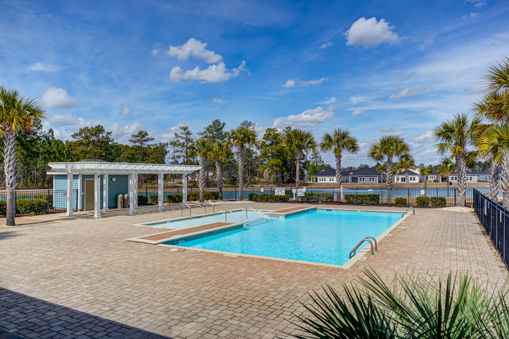 amenities including two pools, a fitness center, playground, clubhouse, lush green spaces, and scenic walking paths—all just minutes
