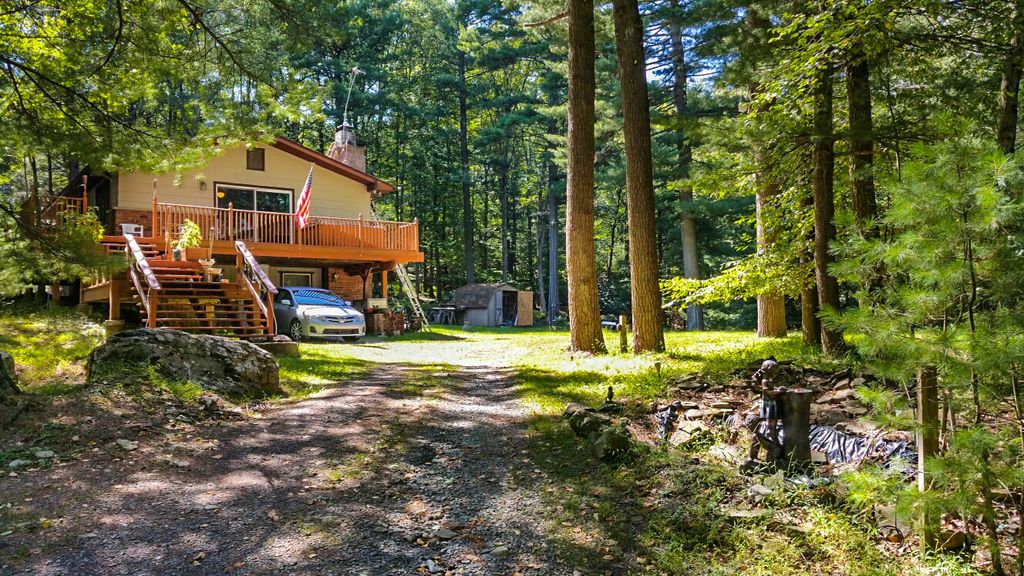 Nature graces you in this 4 Bedroom, 2 Full Bath home set on 2.82 acres nestled on a quiet township road. Enjoy no community & no dues and a short walk to state game lands. This home features a fully finished lower level, wood fireplace, new carpets in the LL & double hung windows, a fully insulated attic w/plenty of storage, an office and a 10x12 shed. Take in the sites and sounds of nature from your wrap around deck or sit under the stars in your spacious backyard. There is room on the property for a garage too!