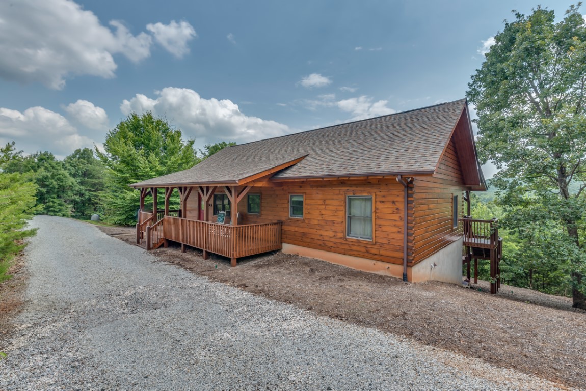 South Mountain Peaks - Jason Huitt log home, 3BR/2BA on the main level and 1BR/1BA and second living/entertainment area in finished basement. Put this on your must-see list. This beautifully constructed, well maintained, 2008 home was custom built for a full-time mountain lifestyle by Jason Huitt of South Mountain Log Homes. Plans change, and our loss is your gain. This carefully thought out floor plan has a family room, three bedrooms, two full baths with an open kitchen and living area on the main level. Downstairs you’ll find an additional bedroom, bathroom and a nice open space currently in use as a second living room and recreation room. The house has everything you need for year-round living, starting with a full-sized kitchen, upscale appliances, pantry and laundry area. This cabin has one of the rarest mountain home commodities… drum roll please, a circle drive and room for a garage. Low maintenance lot, immaculately maintained cabin – come see for yourself.