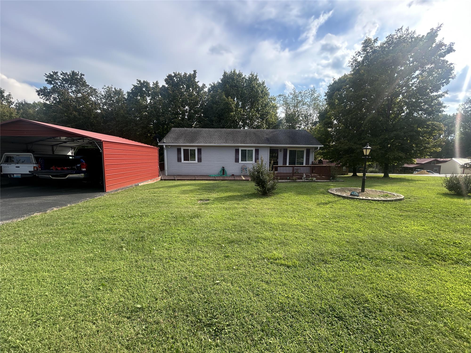 SELLER WILL PAY BUYER'S CLOSING COSTS!!! Owner purchased the home in 2016 and has made many improvements. 2017 - 10x16 storage shed built & Side & back decks built in 2019 - New thermopane windows & doors & New asphalt drive, 2020 - Workshop shed with electric purchased & New heat pump 2021 -Home painted inside, New 2 car carport, New master bath & shower & New carpet in bedrooms & laminate flooring in remainder of home. 2022 - Total Encapsulation of crawl space with termite inspection and spraying, inside french drain & New under floor insulation 2023 - New tankless water heater, New microwave & New 6" gutters with leaf guards. Kitchen appliances included. Only 3 miles from Barren River State Park (BRING YOUR BOAT!). Indian Hills Subdivision. Utilities are normally less than $165. in the winter. 10'x54' back deck. Take a look at this great home that has had everything done for you!