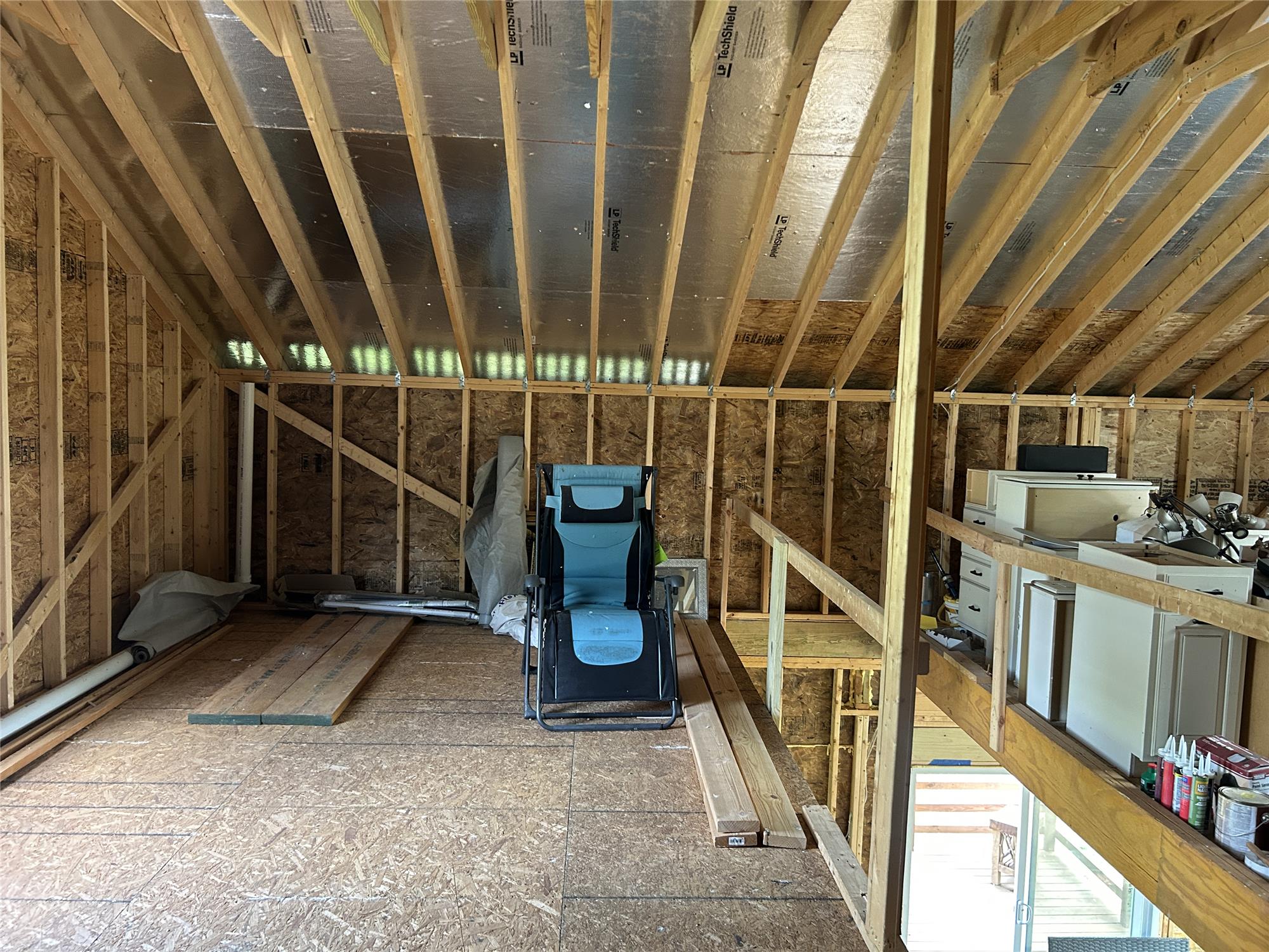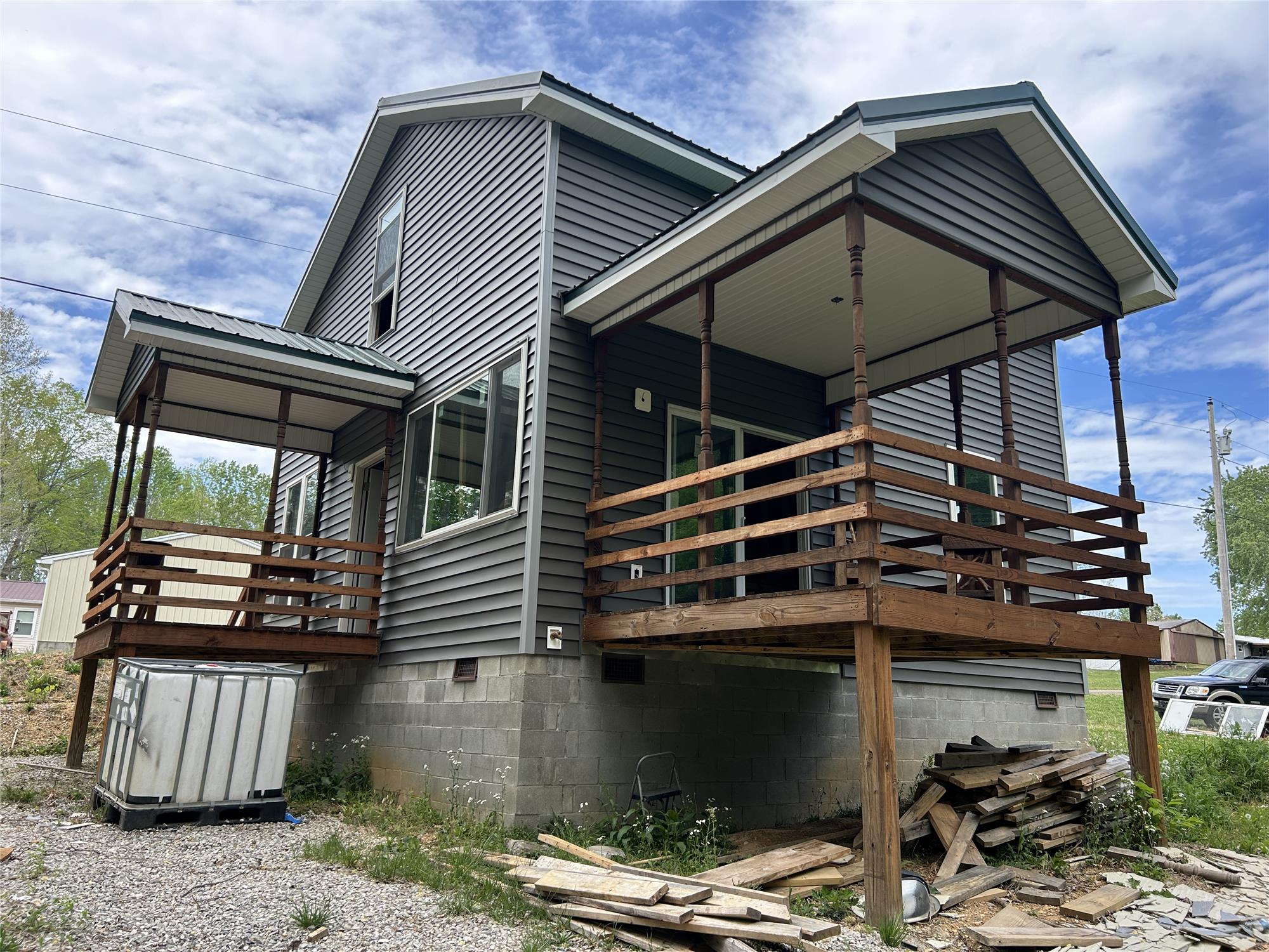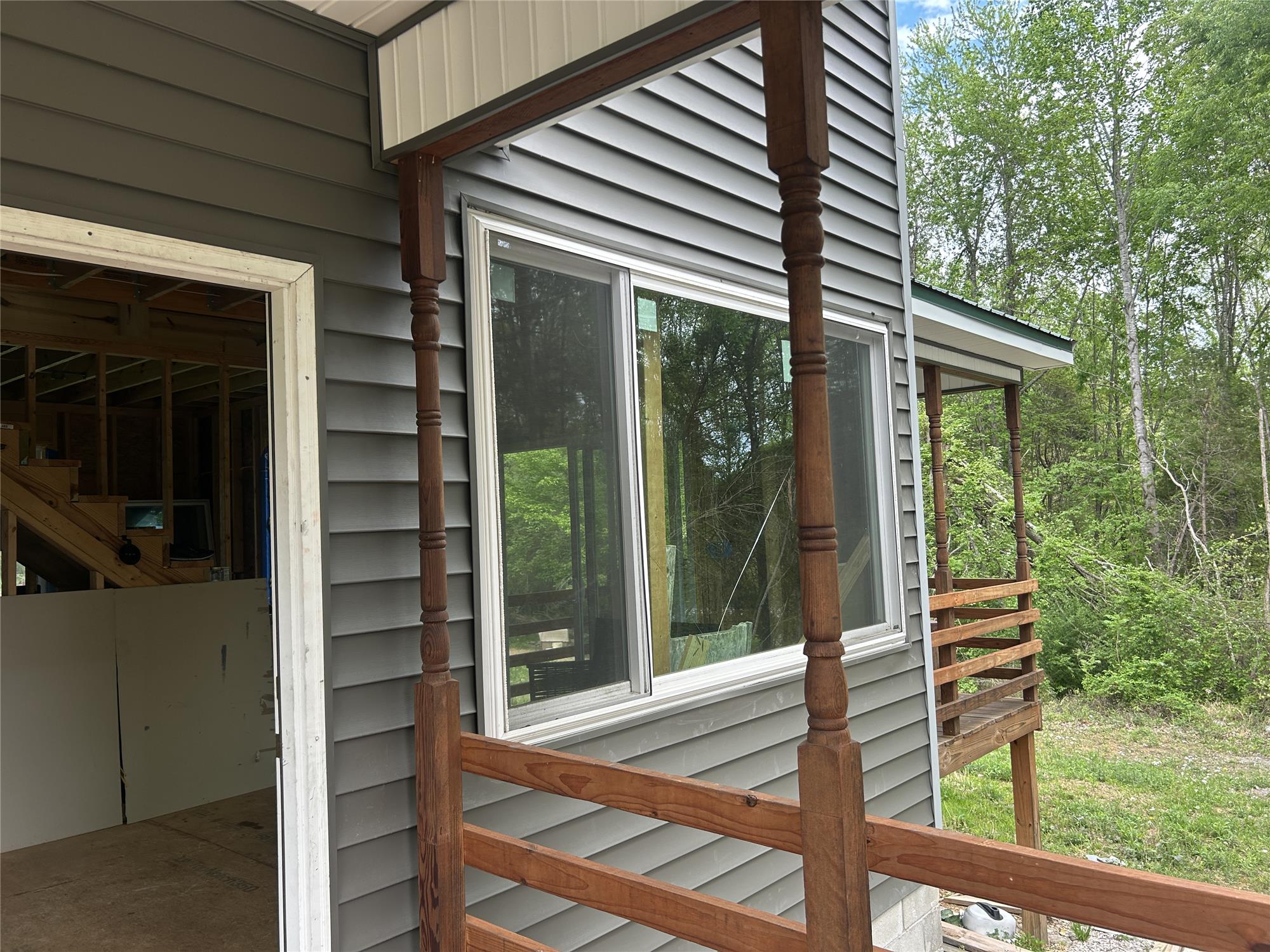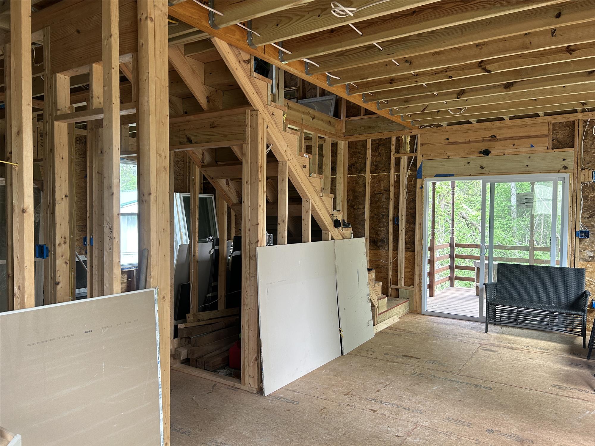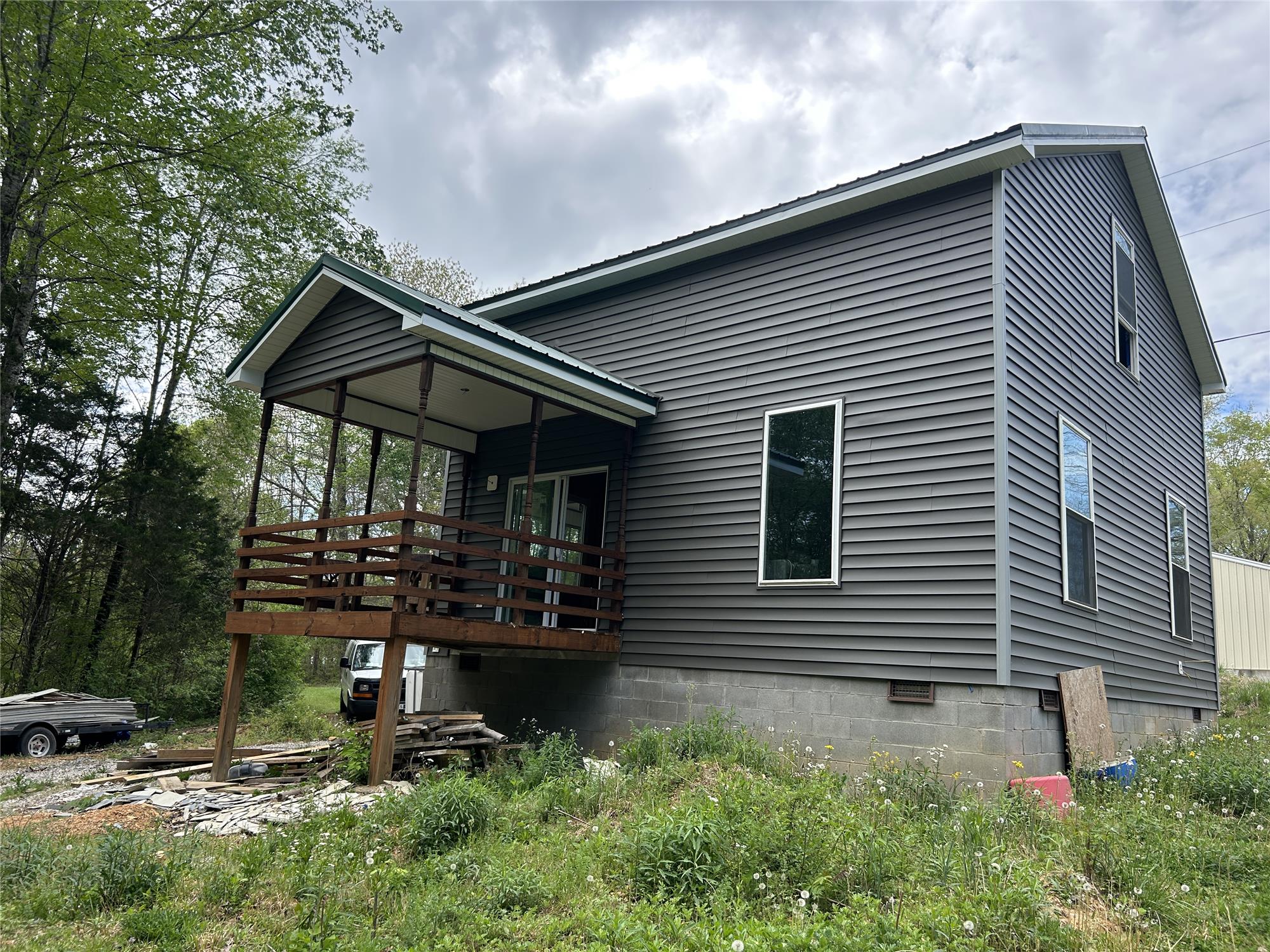 Home is partially finished. Has septic tank installed, electric roughed in and inspected. Vinyl siding. Windows installed. Covered decks. Owner has set some kitchen cabinets in the kitchen. Has more cabinets upstairs. Extra doors & windows & a little flooring is included. You may decide to add a half bath upstairs and wall off for 2 more bedrooms. There's plenty of room for it. Electric ditches have not been covered as it has not had final inspection. Driveway will be across the ditch once it's covered. Use your own ideas to finish this home!