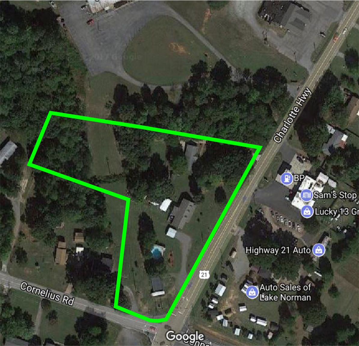 Corner lot, great visibility and heavy traffic. It has approx 650 feet of frontage and is ideal for a gas station, convenience store, retail strip center or fast food site. Offering includes 3 parcels. Lot 1 is zoned NB and approx .93 acres with a 1,800 sq ft manufactured home with outbuildings. Lot 2 is are zoned NB with approx 1.32 acres and a 1,600 sq ft building on the property. Lot 3 is zoned residential and is .8 acres. Both properties are occupied.