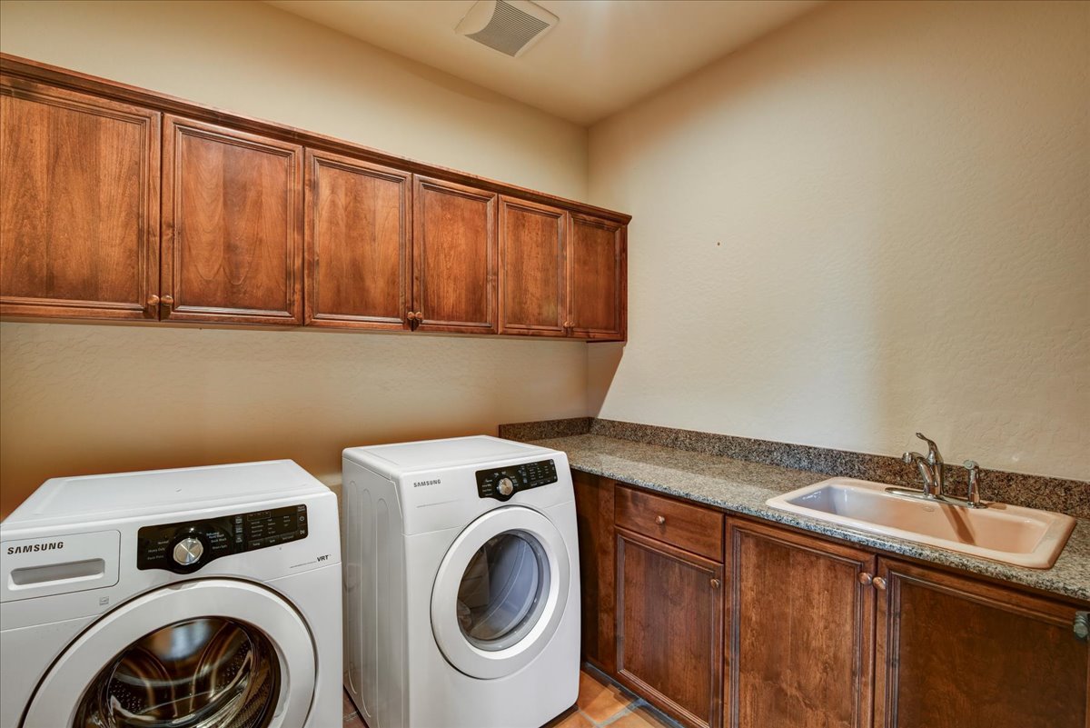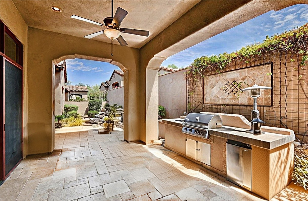 NEW PRICE - LOWEST PRICE PER SQ FT VILLA INSIDE THE GATES OF SUPERSTITION MOUNTAIN GOLF & COUNTRY CLUB. LOCK-N-LEAVE VILLA. This exceptional property offers a seamless blend of elegance, comfort, and resort-style living. The main home spans 2,190 sqft., featuring 2 spacious bedrooms & 2 beautifully appointed baths. Its open-concept design unites the kitchen, great room, & dining area into a bright, inviting space—perfect for entertaining or simply relaxing. The kitchen showcases granite countertops, Viking appliances, and thoughtful finishes throughout. A newer 1,440 sqft guest casita was added to graciously accommodate out-of-town visitors, perfect mother in-law suite, offering a great room, kitchen, dining area, 2 bedrooms, 1 full bath, and an additional half bath ensuring guests feel right at,home. Step outside to a thoughtfully designed back patio, complete with a built-in BBQ, tranquil waterfall, and cozy fire pit ideal for quiet mornings or evening gatherings under the stars. Located just a short walk to the fitness center and clubhouse, this property places you at the heart of endless activities. Enjoy two Jack Nicklaus-designed golf courses, or if golf isn't your passion, explore bocce, pickleball, tennis, hiking trails, and a variety of community events. You will love it here! Club amenities are available under a separate agreement. All pertinent information to be verified by the buyer.