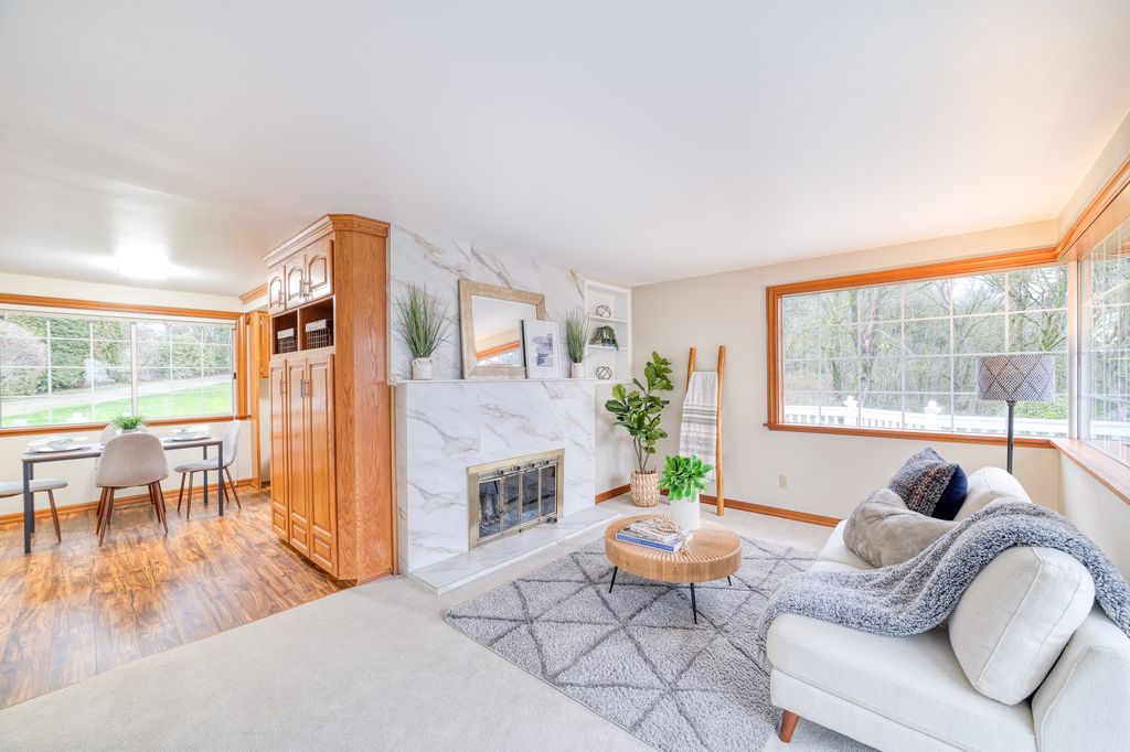 This is a special property in the convenient location of Scenic Hill. Beautiful setting with gated access to 3/4 of an acre (33,900 sf) on 2 tax lots offers privacy, RV parking and plenty of room for relaxation and outdoor activities. Inviting and open floorplan with huge living room features a freestanding woodstove for additional comfort. The kitchen includes Corian counters with a seamless sink and stainless appliances. Three bedrooms and full bath on the main level and a bedroom and 3/4 bath on the lower level makes for a perfect guest room. Other features include A/C, wrap around Trex deck, oversize detached garage with new roof, 220, and plenty of shop space. Great location with easy access to shopping, schools, and Seatac Airport.