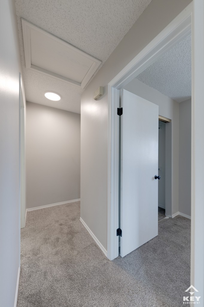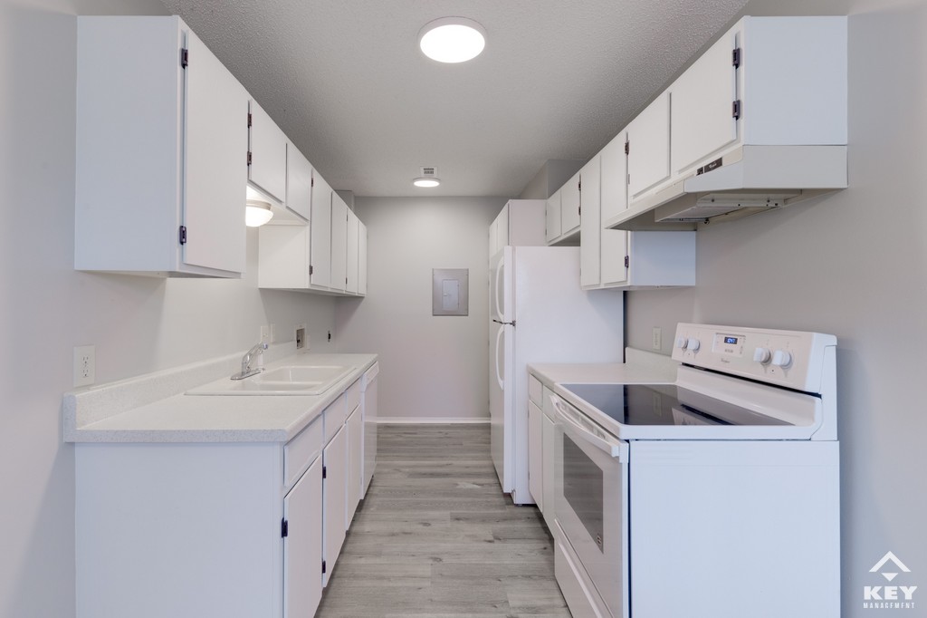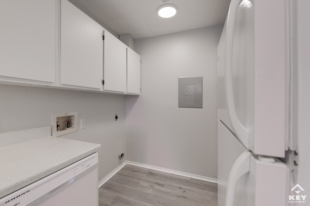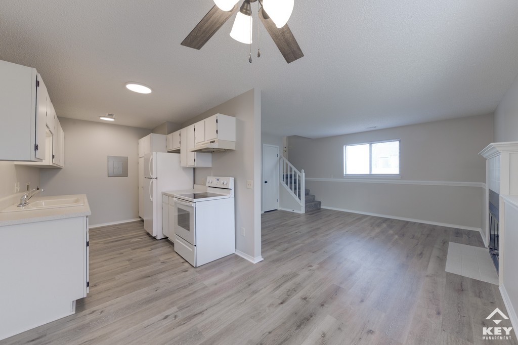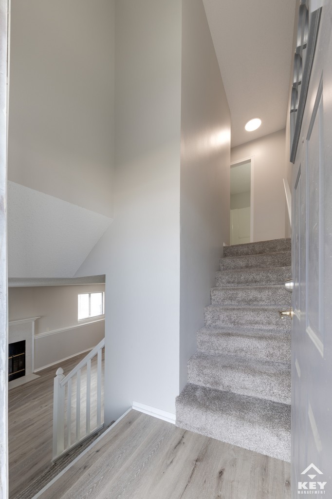 Located near West Maple Street and North Ridge Road in Wichitas westside, this 2-bedroom, 1.5-bathroom split-level townhome features central heat and air conditioning, a fully equipped kitchen, luxury vinyl plank flooring, and washer and dryer hookups. When you enter, the stairs lead to the lower and upper levels. The lower level offers a living room with a decorative fireplace, a dining space, a kitchen with an oven/range, refrigerator, dishwasher, space for a full-size washer and dryer, and a convenient half bathroom. The upper level has two carpeted bedrooms with sliding mirrored-door closets. The front bedroom also includes a second closet with built-in shelving. At the top of the stairs is a full bathroom with a shower and tub combo. If this West Wichita townhome sounds like your new home, contact us to schedule a showing.