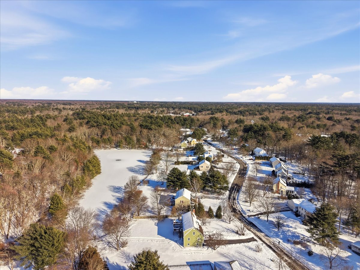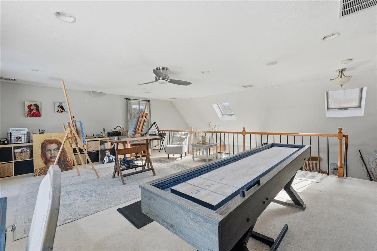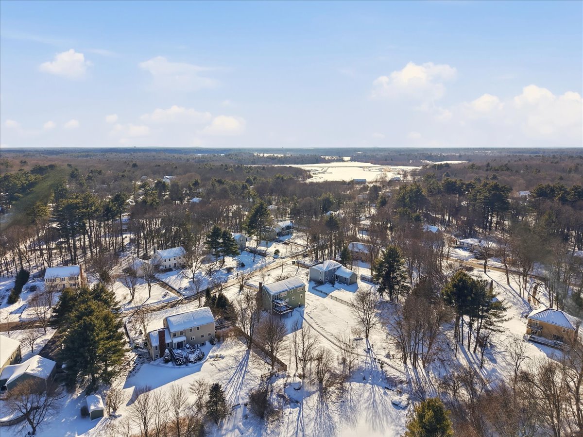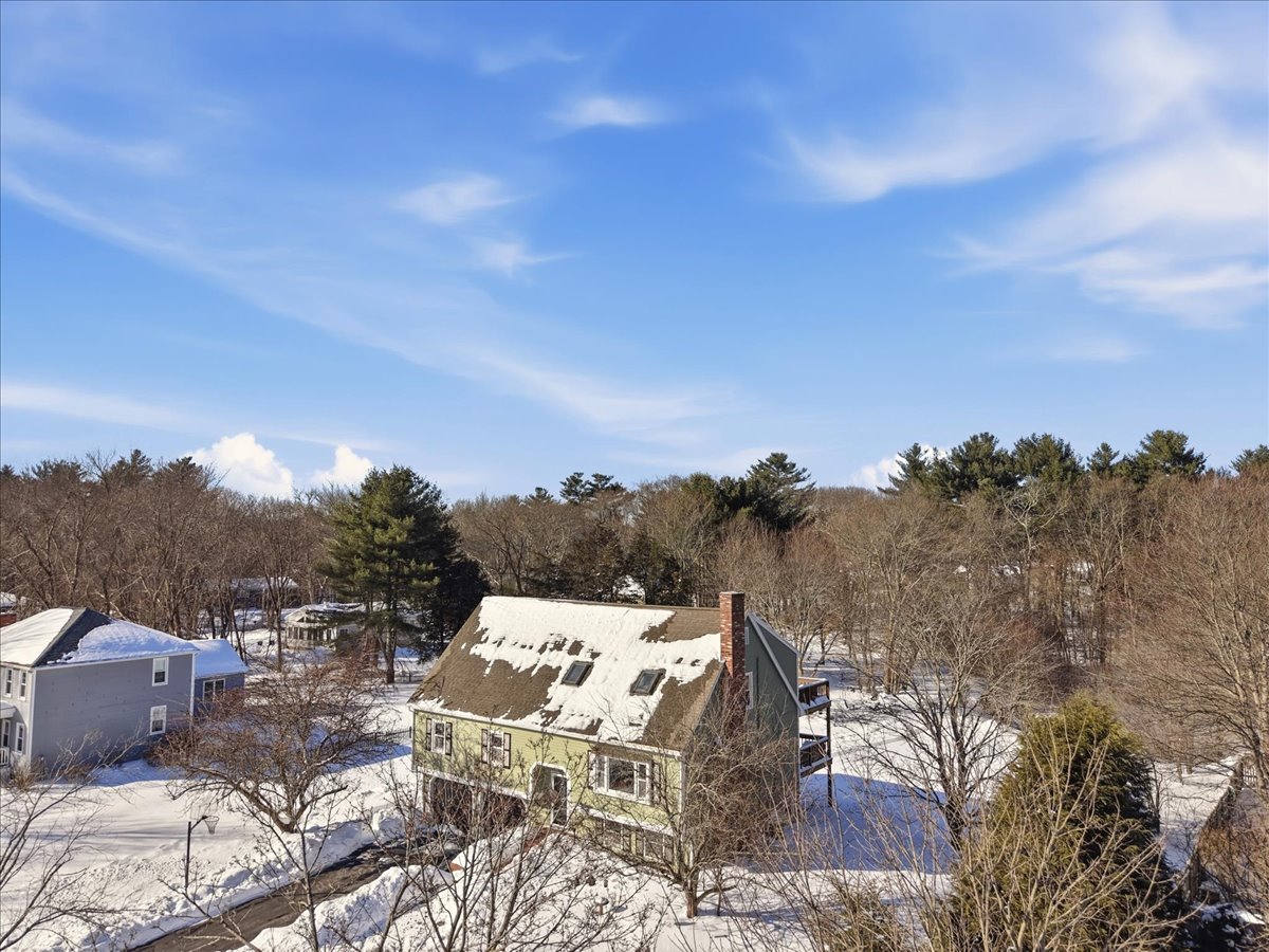 Nestled at 14 Windchime Drive in Mansfield, this lofted-split style home offers a rare opportunity for waterfront living. Set directly on a tranquil pond, the property includes a private dock—ideal for fishing, swimming, kayaking, or simply enjoying the views. Inside, the living room features a striking fireplace, soaring beamed and vaulted ceilings, and skylights that flood the space with natural light. The open-concept layout flows into a well-appointed kitchen with stone countertops, classic shaker cabinetry, a wall chimney range hood, and a center island with breakfast bar. The adjoining dining area and sliding doors lead to an elevated deck overlooking the pond and backyard, creating a seamless indoor-outdoor connection. Three bedrooms and a full bath are located on this level. Upstairs offers an oversized primary suite and a spacious family room, both with access to an additional deck and pond views. A unique blend of comfort, space, and setting in a desirable Mansfield neighborhood.