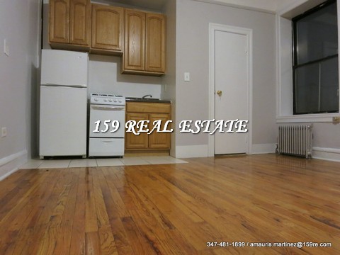 LOW FEE! This is a renovated studio apartment with hardwood floors thru-out located in a well kept elevator building with live-in superintendent. Kitchen equipped with white appliances, wood cabinets, and granite counter-top. Huge room with closet, and an updated bathroom. Baby steps to Riverside Park, The New York Presbyterian-Columbia University Medical Center,, restaurants, cafes, supermarkets, grocery stores, banks, shopping, and to the A-C-1 trains. Call/Text/Email 347-481-1899 / [email protected]