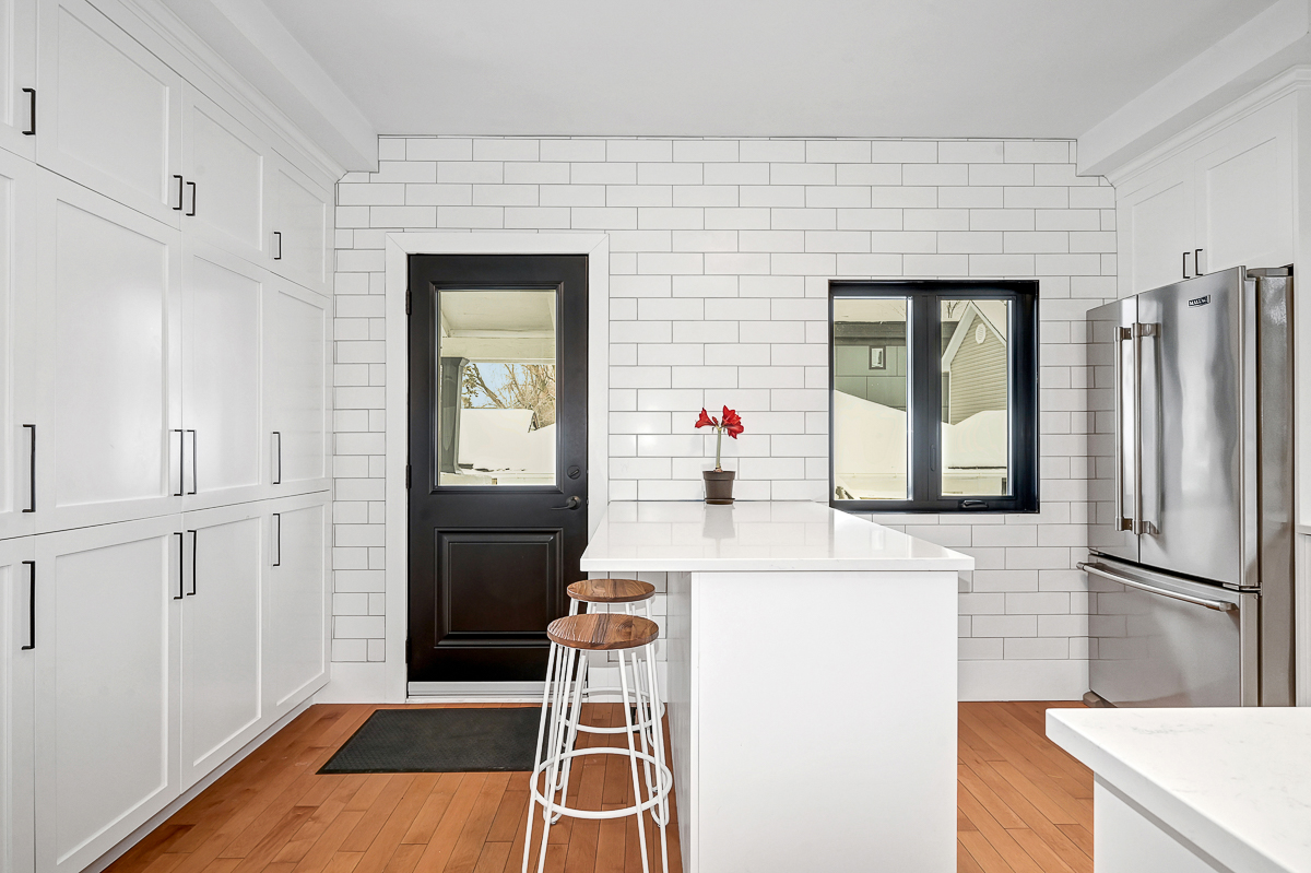 gym, a combined laundry and full bathroom, and a utility room with exterior access. Recent improvements include new windows and doors