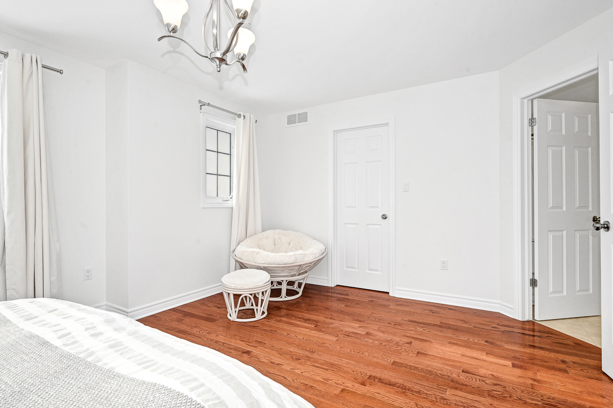 to the second floor. The spacious primary bedroom offers a walk-in closet and a cheater ensuite with double sinks, upgraded cabinetry and