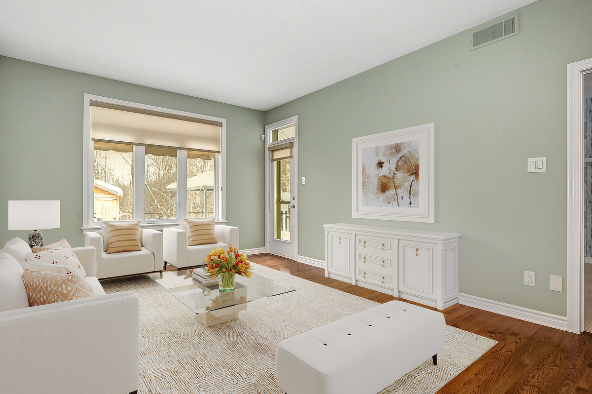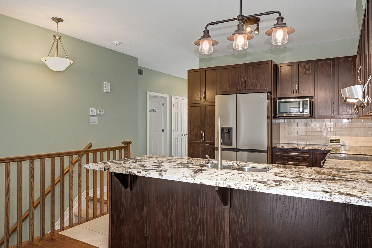Located in the heart of beautiful eQuinelle, this semi-detached bungalow offers an exceptional downsizing option without the maintenance or condo fees. Beautiful private views of trees, it combines community, and an easy lifestyle in one of the area's most sought-after neighbourhoods. With scenic paths, green space, and friendly neighbours, this is a place where people truly enjoy living. The main floor features a bright, open concept layout with 9 ft ceilings, hardwood floors, and a seamless flow that makes everyday living feel effortless. The kitchen is well designed for both cooking and entertaining, with granite counters, stainless steel appliances, ample prep space, and a breakfast counter that naturally draws people together. The sun-filled living and dining area overlooks the private backyard, making it perfect for quiet mornings, casual dinners, or hosting family and friends. The primary bedroom is a true retreat, complete with a generous walk-in closet and spa-like ensuite featuring a soaker tub and walk-in shower. Convenient main floor laundry and a powder room near the front entry add to the practicality of the layout. The professionally finished lower level offers a comfortable family room, a second bedroom, a full bathroom, and plenty of additional storage or space for a hobby room or small workshop. Outside, enjoy a fully fenced backyard with a composite deck and shed, ideal for morning coffee, summer BBQs, or getting lost in a good book. The premium lot, attached garage, and maintenance free astro turf front lawn round out the package. Just minutes to the eQuinelle golf course and community recreation centre with tennis, pickleball, gym, and pool, this home is move-in ready and perfectly suited for a relaxed, next-chapter lifestyle. Downsize in style and enjoy the ease of living well. Some photos have been virtually staged.