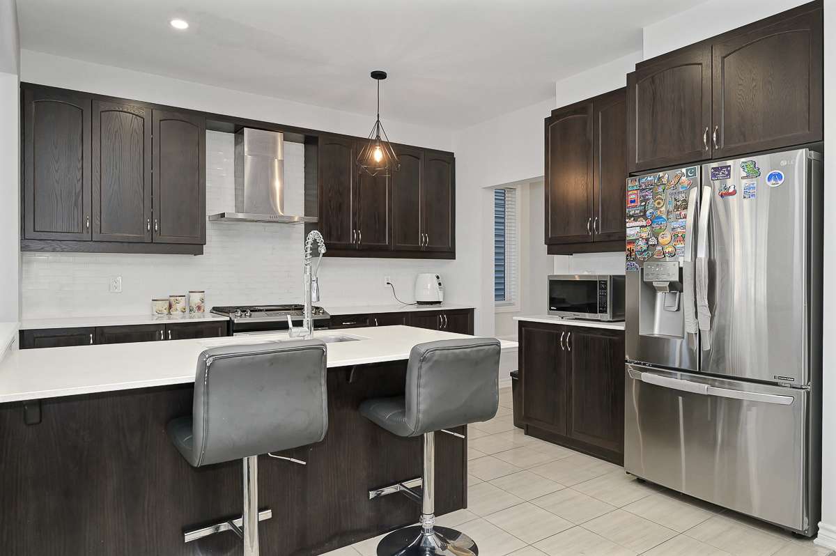 KITCHEN (SS appliances/ gas stove/quartz counters, breakfast bar, WALK-IN PANTRY), living/dining rooms, direct access to rear deck & garage