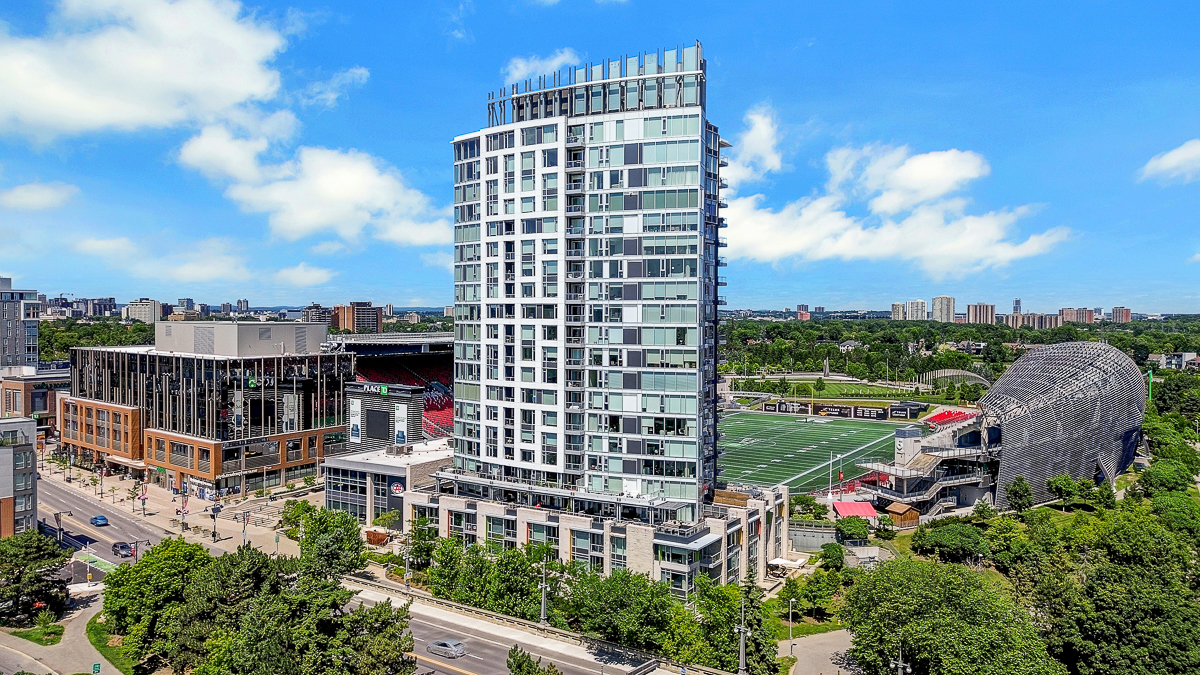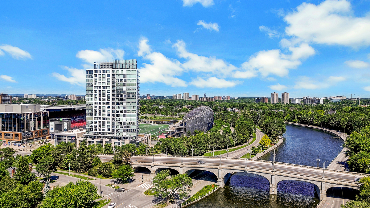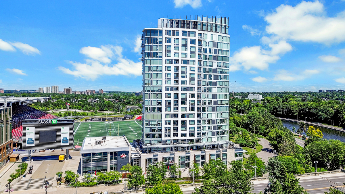 Luxury meets lifestyle at The Rideau in the heart of the Glebe. This stylish 2-bedroom + den, Barry Hobin Designed , 2-storey condo townhome offers a bright, flexible layout with high-end finishes, hardwood floors, and soaring ceilings. The open-concept main level features a sleek kitchen with built-in appliances and an oversized island, flowing into generous living and dining spaces. Walk out to your west-facing terrace with canal view and gas BBQ hookup perfect for evening sun. Upstairs, the primary suite includes a walk-in closet, spa-like ensuite, and private balcony. A second bedroom, full bath, and den complete the level. Enjoy premium amenities: 24/7 concierge, gym, 3rd Floor BBQ terrace, and 3 party rooms and guest suite with stadium views. One underground parking space included, with direct indoor access to Whole Foods, LCBO, and more. Steps to the Rideau Canal, restaurants, parks, and transit. A rare opportunity to own in one of Ottawa's most vibrant communities.