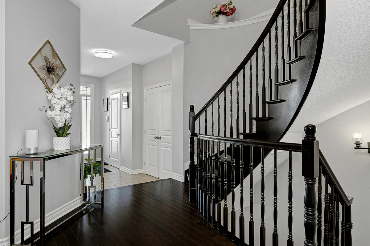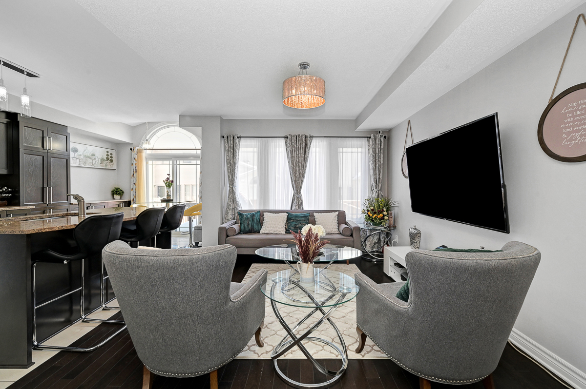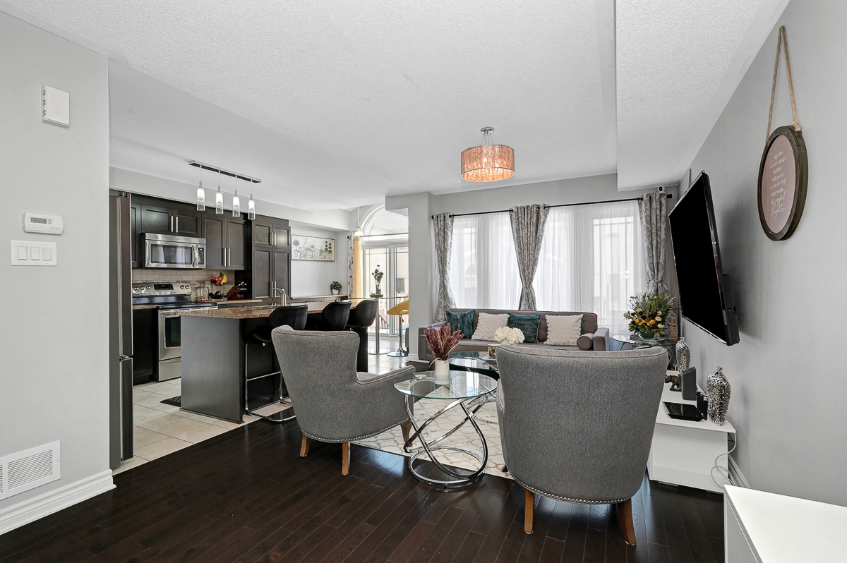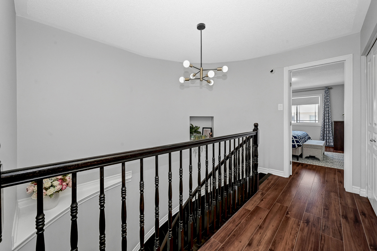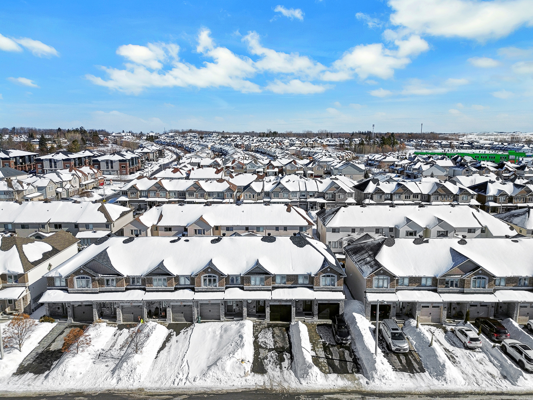 In Chapel Hill South, Orléans, this Valecraft Lausanne model offers 1,737 sq ft above grade in one of Ottawa's most sought after, nature connected communities, surrounded by walking trails, top rated schools, parks, and recreation. An extra wide driveway, extended with interlock brick, sets the tone before you even step inside. The moment you enter, the open concept floor plan reveals itself, a layout created for natural flow and everyday functionality. Hardwood floors stretch across the main level, catching the light as it moves from living to dining to kitchen. A graceful, curved staircase adds architectural interest and leads to the second floor, finished in quality laminate for durability and style. The modern kitchen rises to the occasion, literally, with a cathedral ceiling that amplifies space and light. Granite countertops provide generous prep areas, while extended wall to wall cabinetry and a walk-in pantry keep everything beautifully organized. The spacious eat in area becomes the heart of the home, ideal for weekday breakfasts or long, lingering weekend dinners. Downstairs, the finished basement expands your lifestyle possibilities. A large family room anchored by a gas fireplace invites movie nights and cozy winter gatherings, while a convenient 2-piece bath and separate storage room add practical flexibility. Out back, a generous deck creates the perfect setting for summer barbecues, morning coffee, or evenings under the Ottawa sky. Located in Chapel Hill South, known for its green space, family-friendly atmosphere, and strong community feel, this home delivers both connection and convenience.