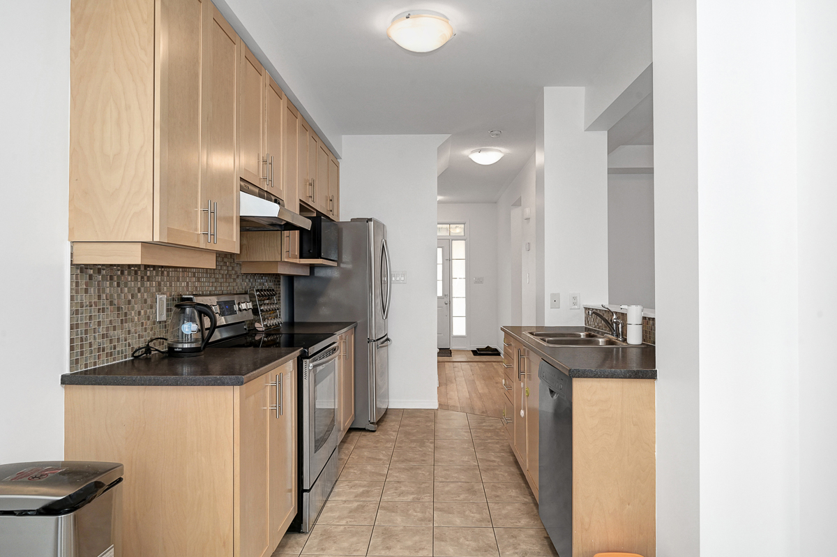 Welcome to this beautifully maintained 3 bedroom, 2.5 bathroom townhome, ideally situated on a quiet and peaceful street in a highly desirable neighbourhood. Offering comfort, style, and convenience, this home is just minutes from excellent schools, parks, shopping, transit, and all essential amenities. The main level showcases rich flooring and impressive nine foot ceilings, creating a bright and inviting atmosphere throughout. The spacious living room features a cozy gas fireplace perfect for relaxing evenings while the well appointed kitchen offers ample cabinetry and a charming eat-in area ideal for family meals or entertaining guests. Upstairs, you'll find three generously sized bedrooms, including a primary retreat complete with a private 4 piece ensuite. A full main bathroom serves the additional bedrooms, offering comfort and practicality for family or guests. The fully finished basement provides additional living space, perfect for a recreation room, home office, or gym. Step outside to enjoy the fully fenced backyard, ideal for children, pets, or summer gatherings. Freshly painted throughout, this move in ready home combines comfort, functionality, and location in one exceptional package. A wonderful opportunity to own in a fantastic community! Some photos have been virtually staged.
