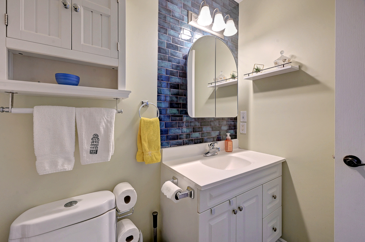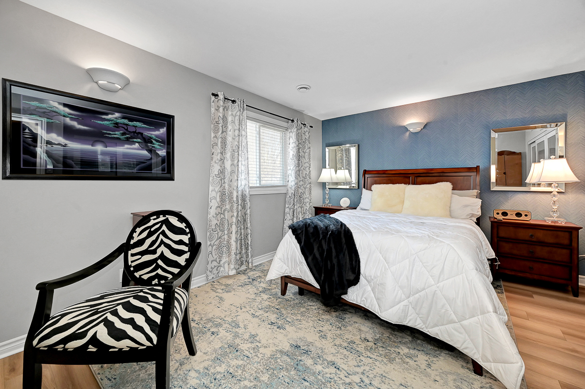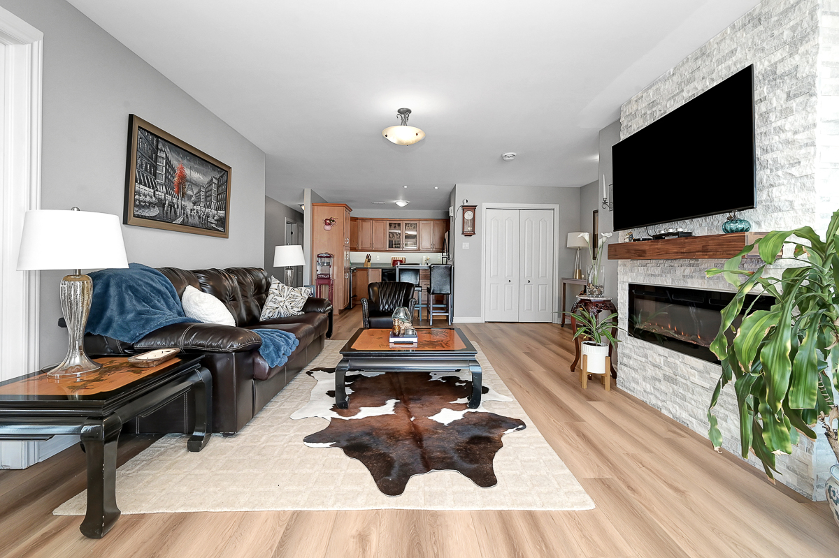 stone accent wall in the living room with electric fire place adds warmth to the space. Two spacious bedrooms with new custom closet in the