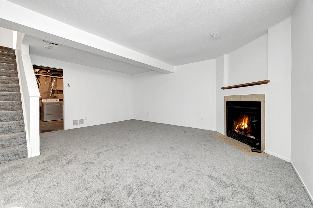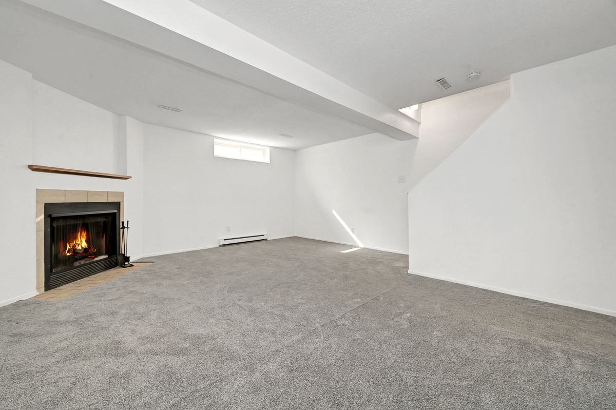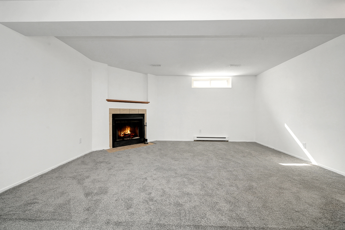 linen storage keeps everything organized. The finished lower level extends your living space with a large family room anchored by a cozy woodburning fireplace, an inviting setting for movie nights or relaxed gatherings, also finished with new carpet (2026). Laundry and abundant storage