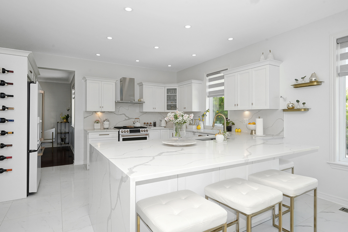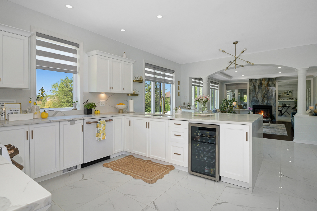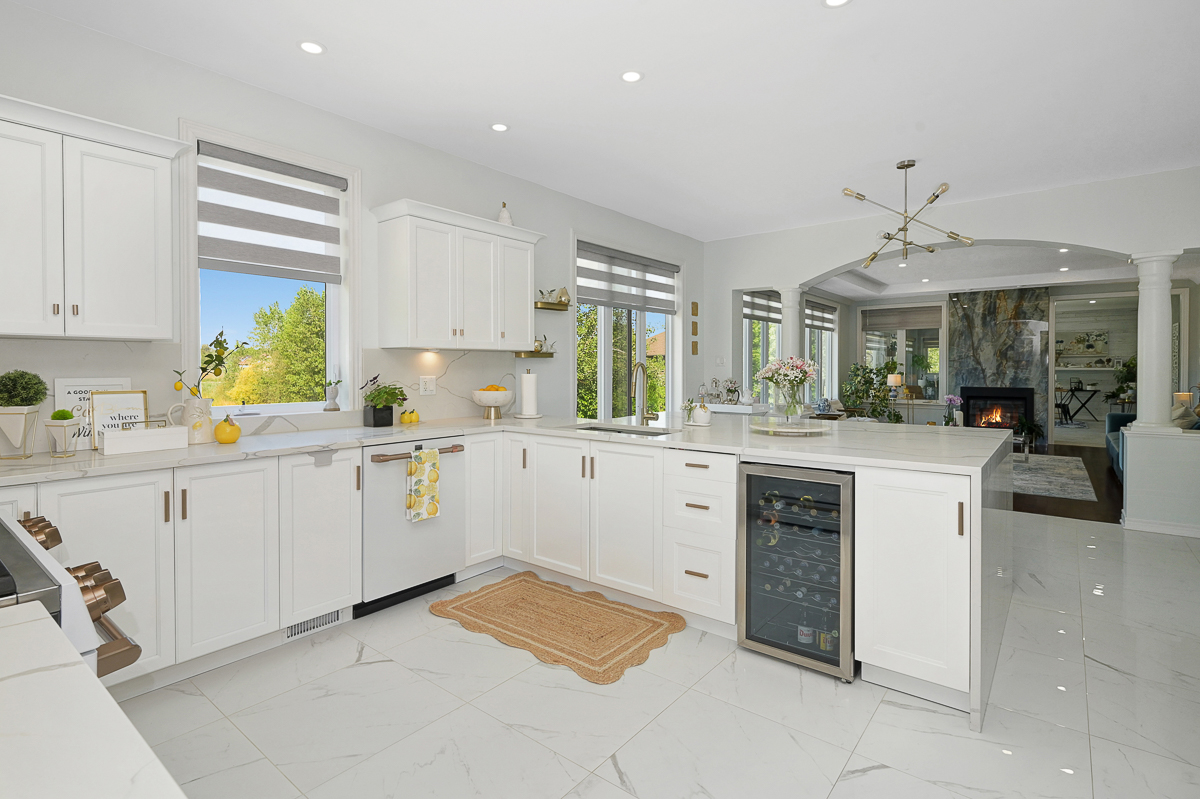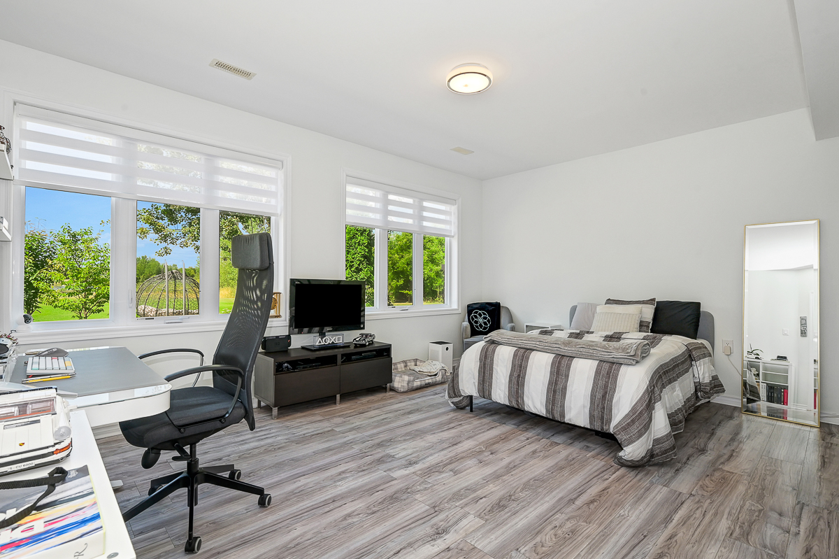 Discover the ultimate in waterfront living with this stunning 5 bedroom, 5 bath residence set on a private 2.3 acre lot with over 120 feet of direct lake frontage. Perfectly situated just 10 minutes from Kanata's tech hub, shopping, and dining, and only 5 minutes to the 417 for quick access downtown, in one of the areas most desirable communities. Custom built in 2010, this home offers 5,000 sq ft of finished living space across three levels, and enhanced with more than $500,000 in renovations, it blends timeless craftsman design with modern finishes across three levels of living space and a three car garage. The main floor features expansive living and dining areas with oversized windows framing both front and back views, a chefs kitchen with Calcutta quartz counters and backsplash, white shaker cabinetry, oversized peninsula, and high end appliances, a bright breakfast area, family room with gas fireplace, and a sun filled three season room offering panoramic lake views, along with a dedicated office, oversized mudroom, and convenient laundry with garage access. Upstairs, three suite style bedrooms provide luxury and privacy, including a primary retreat with a spa inspired ensuite boasting a freestanding soaking tub, dual vanities with valence lighting, and a custom glass walk in shower. The fully finished walkout lower level adds versatility with two additional bedrooms, a full bathroom, a spacious recreation room and ample storage. Outdoors, enjoy landscaped grounds with mature trees, a stone patio, pergola, and a fruit bearing orchard, perfect for family gatherings or elegant entertaining. Added features include a 10 zone sprinkler system, wired for GenerLink, 40 amp garage receptacle for EV charging, new furnace, AC, and water heater (all owned), plus an epoxy coated porch. This rare offering in West Lake Estates combines craftsmanship, thoughtful updates, and year round waterfront enjoyment. Annual co-tenancy fee of $100 covers lake maintenance.