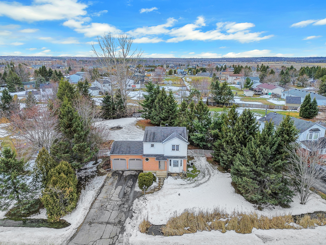 PRIVATE RURAL PARADISE - MERE MINUTES TO KANATA NORTH. Seize this exceptional opportunity to have a single detached home on a MASSIVE TREED LOT (118'x235') with towering mature evergreens. This beauty offers a FULLY FENCED private rear yard and no front neighbours!! NATURAL GAS HEAT with central air conditioning. FIBRE HIGHSPEED. A simply majestic place to call home. 3+1 BEDROOM, 2.5 bathrooms...primary bedroom with 4piece ensuite. Main floor boasts a formal living/dining room, STUNNING renovated contemporary CHEF'S KITCHEN (centre island, premium stainless appliances, granite counters, pot lights) and rear family room with cozy WOOD fireplace. Upgraded hardwood and ceramic flooring throughout the first floor, hard surface flooring on 2nd/lower levels = NO CARPET. LARGE WINDOWS = LOADS OF NATURAL LIGHT. Fully finished basement with 4th bedroom and large family room, ideal for large family, home office, home gym. Oversized 2 CAR GARAGE offers direct access to house and rear yard. PRIVATE BACKYARD OASIS...rear deck, fire pit and plenty of space to roam/play - fully fenced!! All of this and more, located in a family-friendly neighbourhood, just a few minutes' walk from Porcupine Park, which features a play structure, short drive to Kanata North. Generator included with garage plug in and dedicated panel.