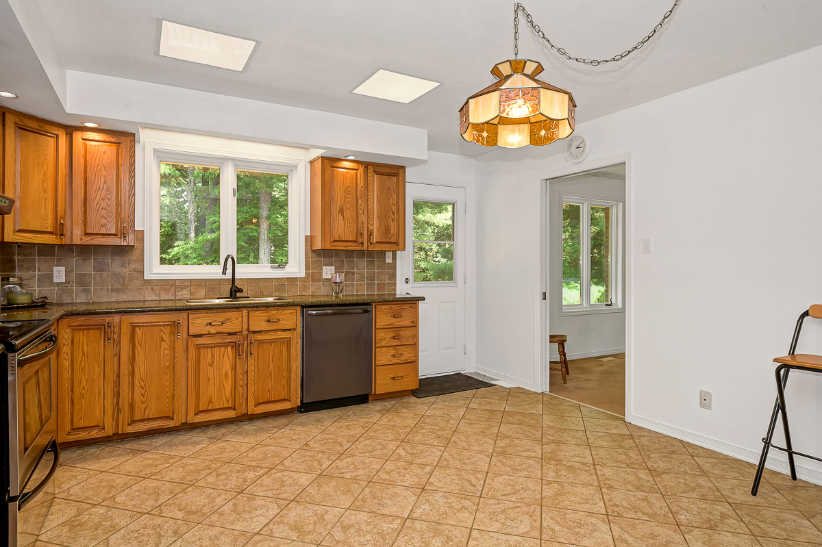 for morning coffee or unwinding at the end of the day.The kitchen is bright and functional, with views of the surrounding greenery that make