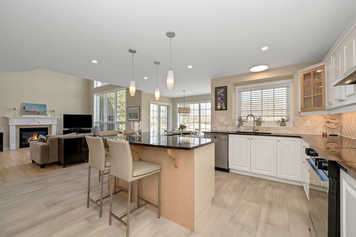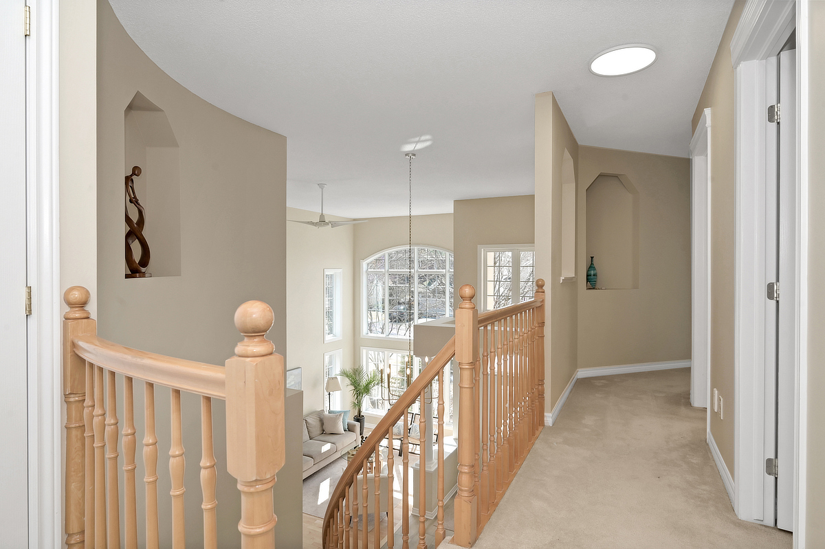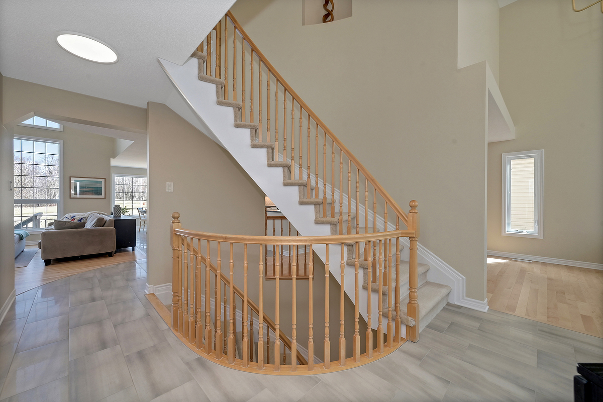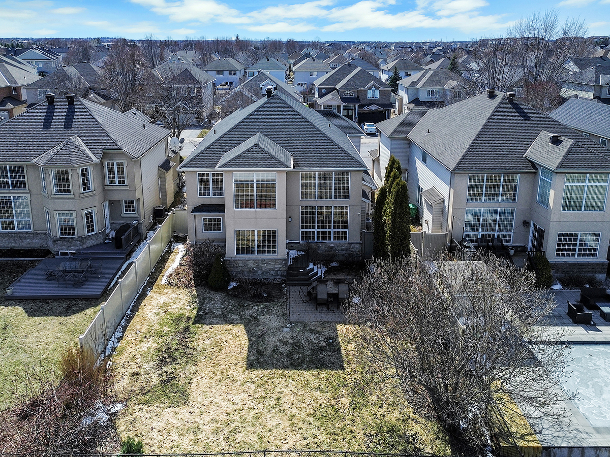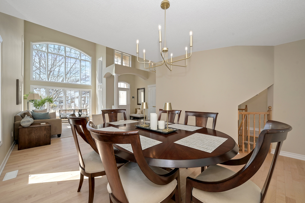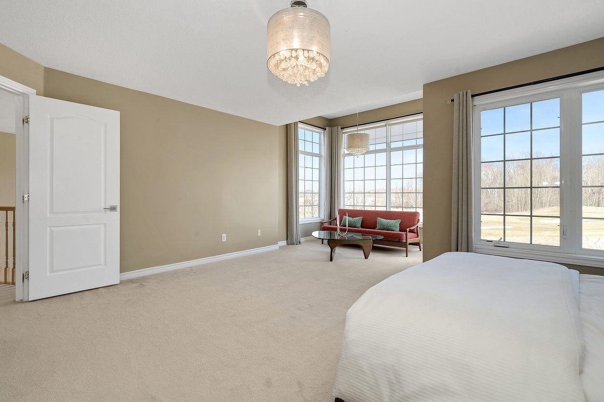 Located in the sought after Stonebridge community, backing onto the back nine of the golf course and surrounded by parks, walking paths, schools and the amenities of Barrhaven, this home offers a setting that combines privacy with an active, established neighbourhood. This extended Muirfield model is designed to maximize light and views, the home features dramatic two storey windows in both the living room and family room, creating a striking architectural presence while framing the landscape beyond. The main level offers hardwood flooring, well balanced living spaces including a dedicated office, formal and casual areas, and an updated kitchen with granite counters and a bright eating area wrapped in windows on three sides. A main level laundry and mud room with access to the double garage adds everyday convenience. Upstairs, the primary suite is set apart with a beautiful sitting area overlooking the course, a walk in closet, and a spa like ensuite with soaker tub and walk in shower, creating a true retreat within the home. The lower level has been professionally finished with 9 foot ceilings and provides a large open rec room, additional bedroom, full bathroom and ample storage. Extensively updated and thoughtfully designed, this is a home where space, light and setting come together in a way that is rarely offered