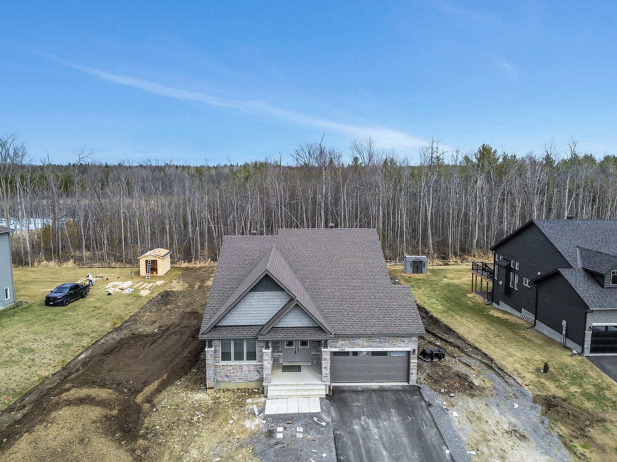 THIS HOME QUALIFIES FOR THE NEW HOUSING HST REBATE. Welcome to 280 Antler Court. A stunning Craftsman-style bungalow designed for effortless one-floor living. From the moment you step into the dramatic foyer, the soaring ceilings set the tone for this thoughtfully appointed home. The open-concept great room boasts 12-foot ceilings creating a warm yet airy gathering space. The chef's kitchen is a showstopper, featuring Quartz countertops on both the perimeter and oversized island, soft-close drawers throughout, and a gas stove line. Retreat to the primary bedroom with a generous walk-in closet and a luxurious ensuite complete with soaker tub. Additional comforts include a sunroom bathed in natural light a convenient mudroom, and a linen closet for added organization. Additional highlights include a main-floor laundry room, a covered deck and unfinished walk out basement offering the potential to add future living space. Some photos have been virtually staged.