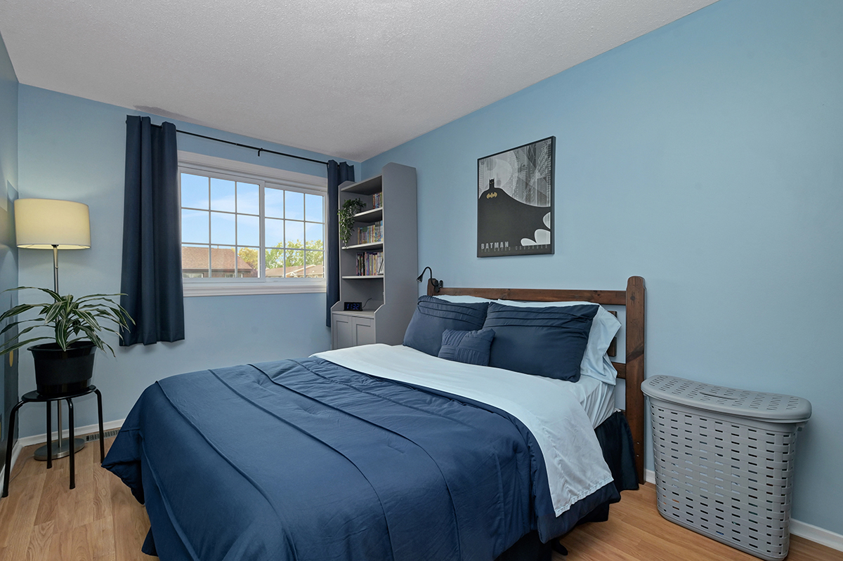 Quiet 3-bed, 2-bath row unit with no rear neighbours. Open main floor with hardwood, spacious kitchen, finished basement, and large primary with cheater ensuite. Close to schools, parks, trails, and shopping.
