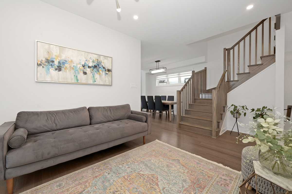 4 bed, 3 bath detached home with hardwood floors, 9 ft ceilings, open layout, vaulted family room, quartz kitchen, walk-in pantry, finished basement, and 2-car garage. Primary suite with ensuite and walk-in closet.