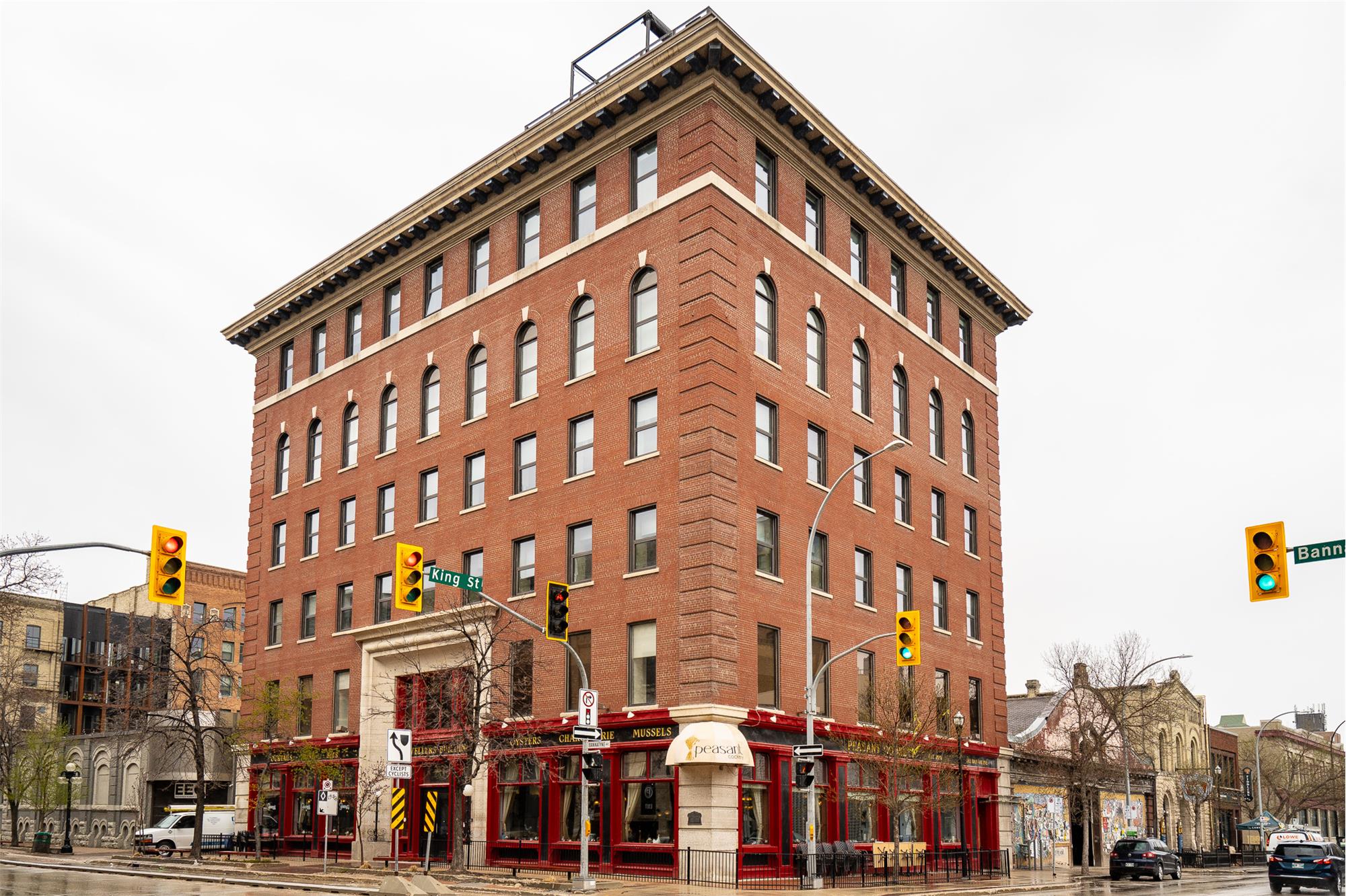 This beautifully designed, fully furnished, loft style condo in the heart of Winnipegs Exchange District is the perfect urban home for any professional looking to living in one of the citys most iconic buildings. Architecturally designed and professionally decorated this 1 bedroom plus den condo overlooks King Street and Market Square Park. Soaring ceilings along with massive windows provide an abundance of natural light. High end finishings and appliances throughout. Heated underground parking and all utilities included. Within walking distance to many shops and restaurants.