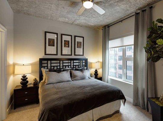 LUXURY APARTMENT FEATURES: Convertible, one-bedroom & two-bedroom floor plans Two soft loft designer finish packages to choose from Ten-foot ceilings with exposed concrete and spiral duct work Wired for SilverIP Gigabit broadband Internet Wood flooring throughout* Elegant quartz countertops in kitchens and baths Fully-equipped kitchens with stainless steel GE ENERGY STAR appliances Espresso or slate gray kitchen cabinets with designer tile backsplashes Modern fixtures with gooseneck kitchen faucet & pull-down sprayer Undermount sinks in kitchens and baths Porcelain tile bath floor