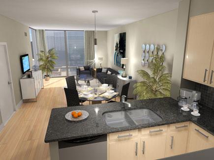 INTERIOR LUXURIES: Upgraded Interiors for total immersion Astonishing City Views day to night from every home Posh Kitchen Package - Stainless steel appliances and slab granite countertops Hardwood Floors throughout Something you don't find downtown: Balconies. Get ready to gloat. Custom Climate - Individual temperature controls for heating & cooling Pre-wired for high-speed internet, cable, ceiling fan or light fixture Expansive walk-in closets Furnished Units Available