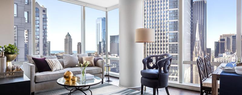 IMPECCABLE LUXURY FINISHES: -9 to 10 foot ceilings with floor-to-ceiling windows offering spectacular views of the Chicago River and the city skyline -Custom-designed wide-plank flooring throughout, including bedrooms -Gourmet kitchens including Snaidero high-gloss duotone cabinetry, stainless steel hardware and polished quartz countertops with white marble mosaic tile backsplash -Professional built-in stainless steel appliances including: KitchenAid Architect Series refrigerators with bottom freezer drawer and icemaker, gas ranges with stainless steel hoods, paneled dishwashers, garba