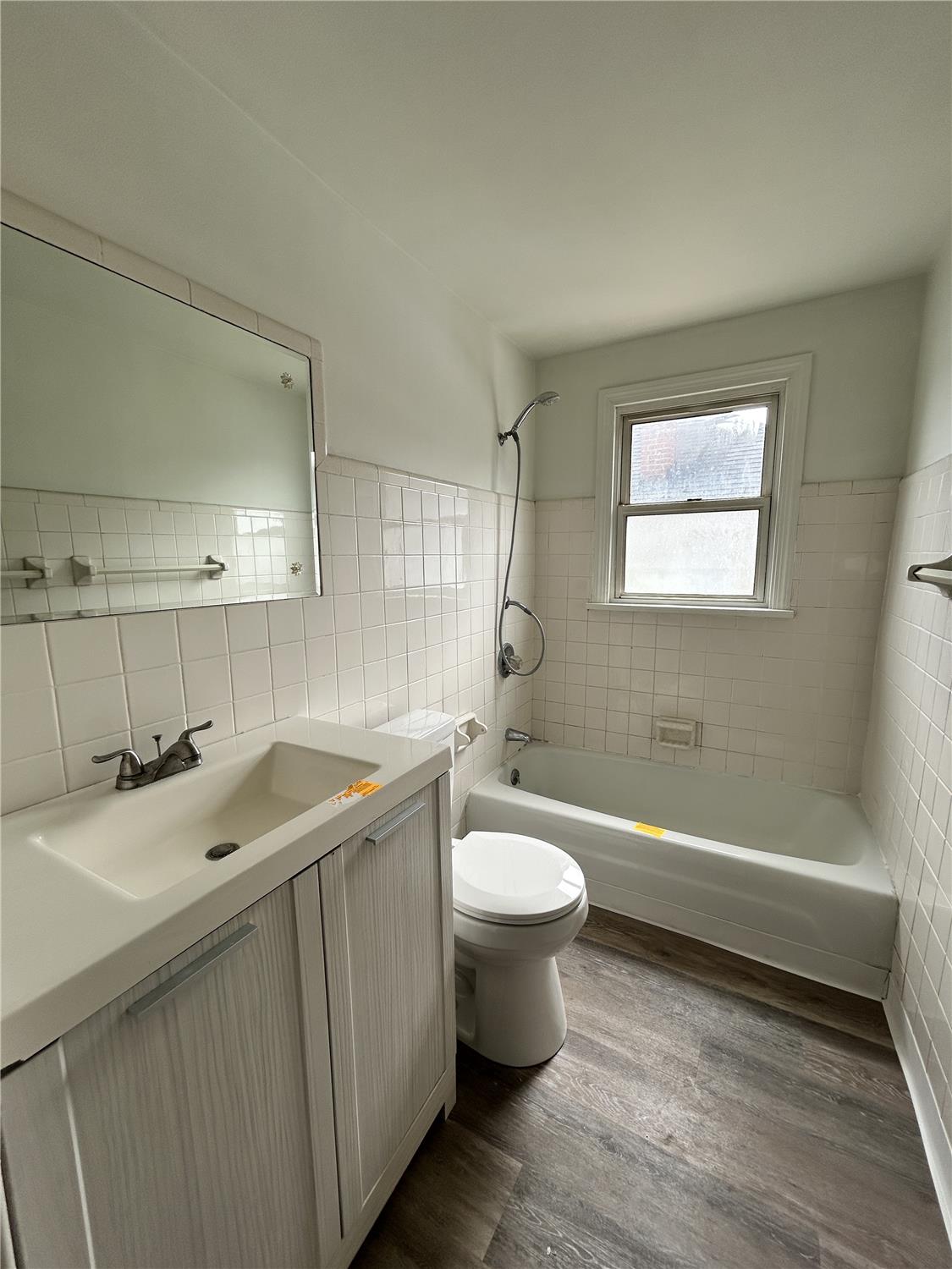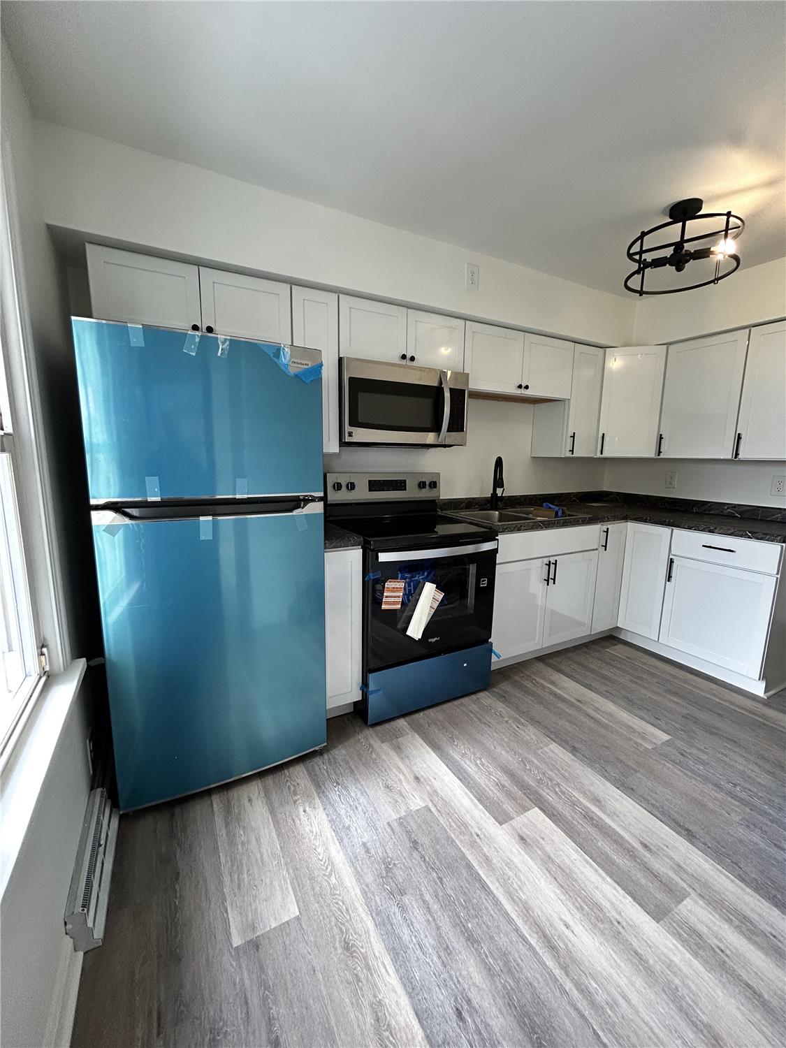 Welcome to this spacious 2-bedroom, 1.5-bathroom apartment! It features a long driveway, garage, and a porch perfect for relaxing. Step inside the side entrance to an updated kitchen with stainless steel appliances, including a stove, refrigerator, and microwave. Fresh paint and new laminate flooring flow throughout the apartment. The formal dining room provides plenty of space for meals and gatherings, and the bright living room is filled with natural light from large windows. Both bedrooms are generous in size with ample closet space. The unit includes one full bathroom and an additional half bath. Enjoy the laundry hookups in the unfinished basement and a private backyard for outdoor enjoyment.With modern updates and a prime location, this apartment is ready to welcome youschedule your tour today! No HUD. No Pets. No Smoking. Tenant pays all utilities.