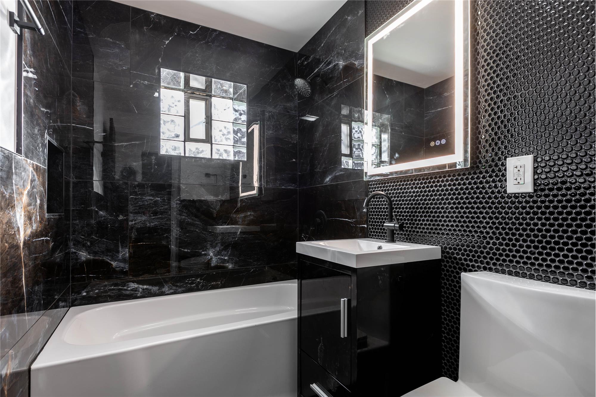 * Black marble bathroom