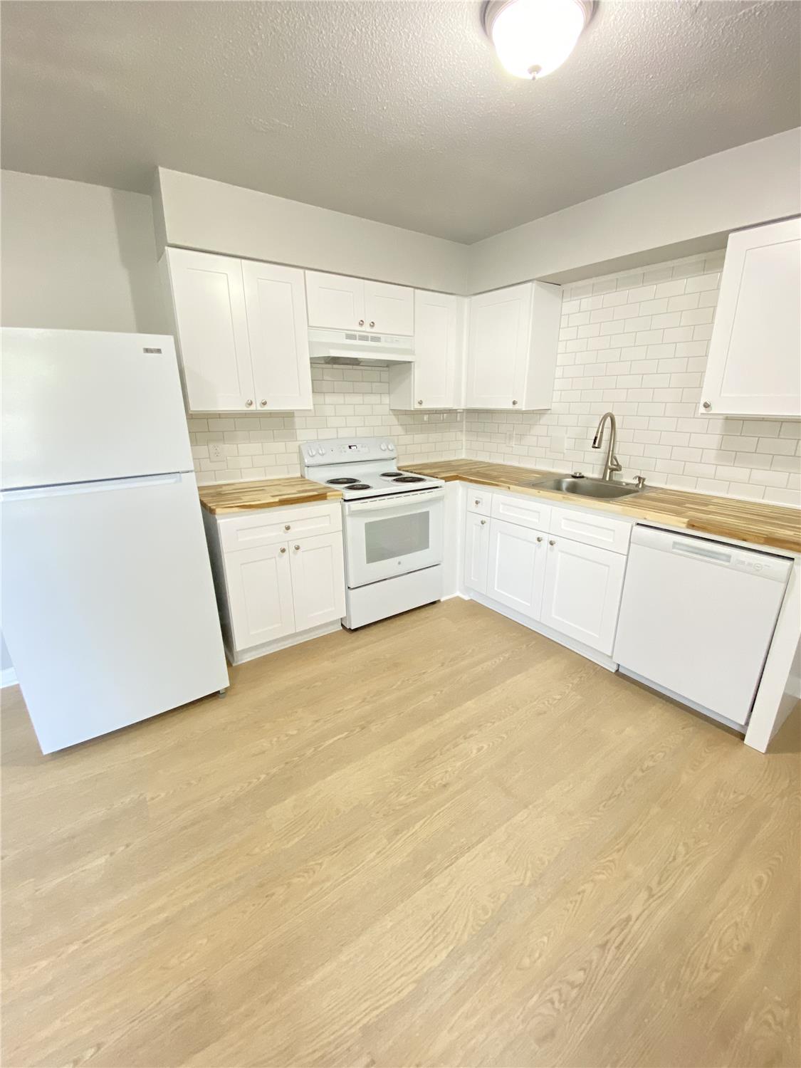 The kitchen has been updated and includes a refrigerator, stove, and dishwasher, offering practical workspace and storage for daily living. Washer and dryer connections are available, allowing flexibility for personal laundry appliances. The layout is efficient and easy to furnish, supporting a variety of living arrangements.