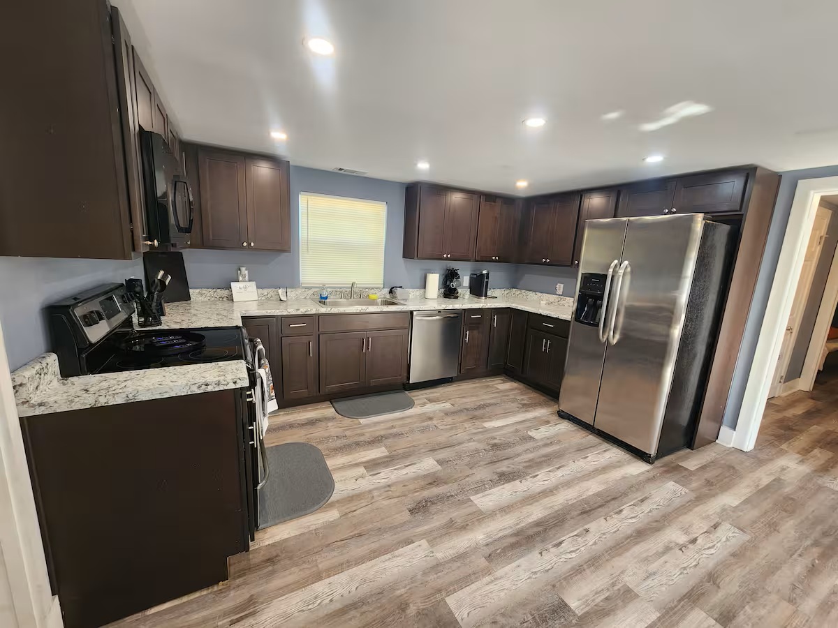 This well-maintained residence features no carpet throughout, offering a clean and low-maintenance interior. The kitchen is equipped with refrigerator, stove, dishwasher, and microwave, providing functional space for everyday living. The bathroom has been updated with refreshed finishes.