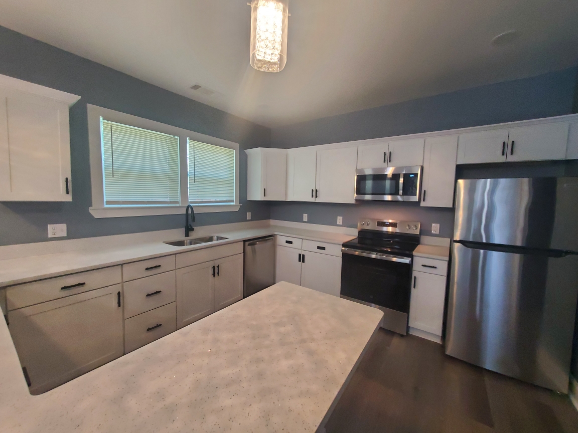 Kitchen includes refrigerator, stove, dishwasher, and microwave