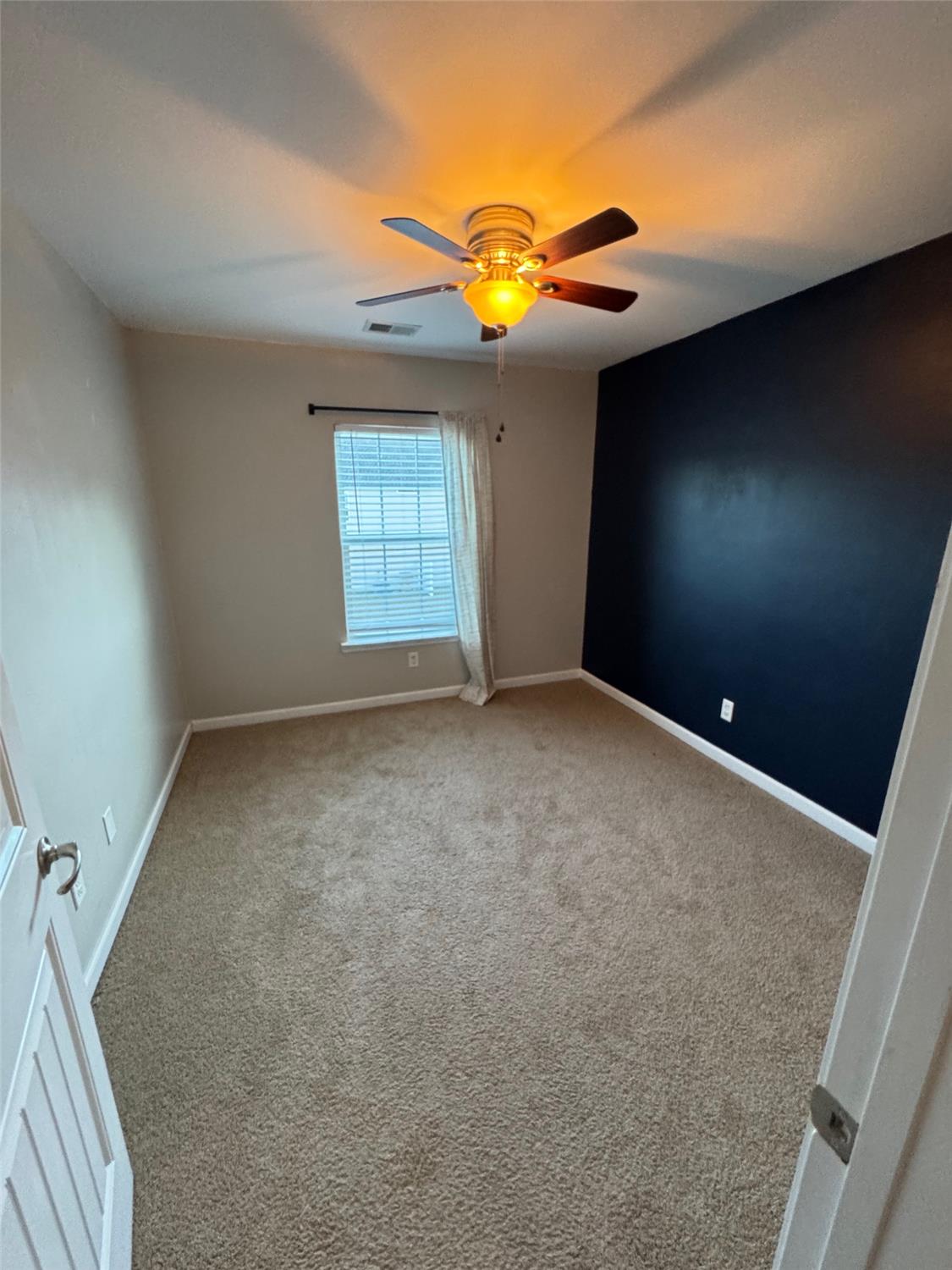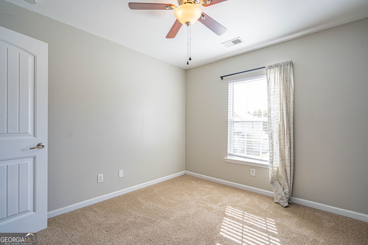 Upstairs, all bedrooms feature carpeted flooring and ceiling fans. The primary suite includes a private bathroom and comfortable layout.