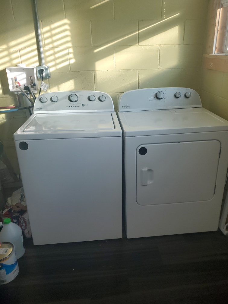 The living area features ample natural light, creating a bright and inviting main gathering space. The kitchen is equipped with a stove, refrigerator, dishwasher, and microwave, offering a complete appliance package suitable for everyday meal preparation and storage needs. A washer and dryer are included in the home for added convenience.