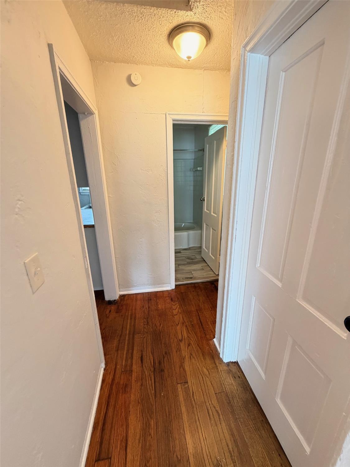 This duplex provides a practical floor plan with wood flooring and off-street parking.
