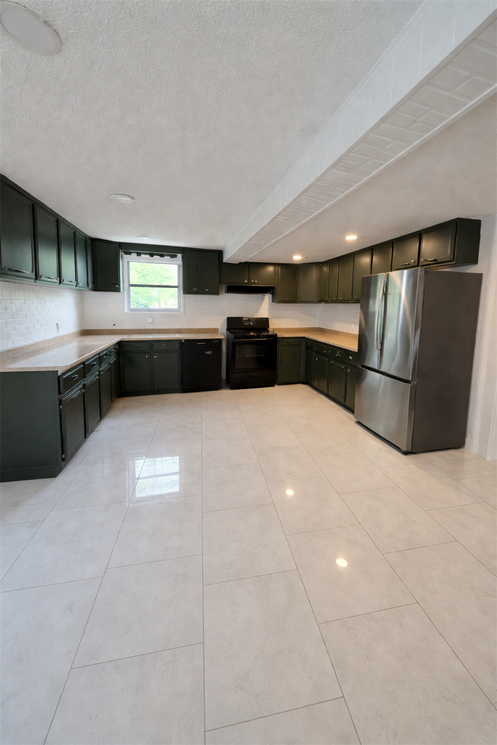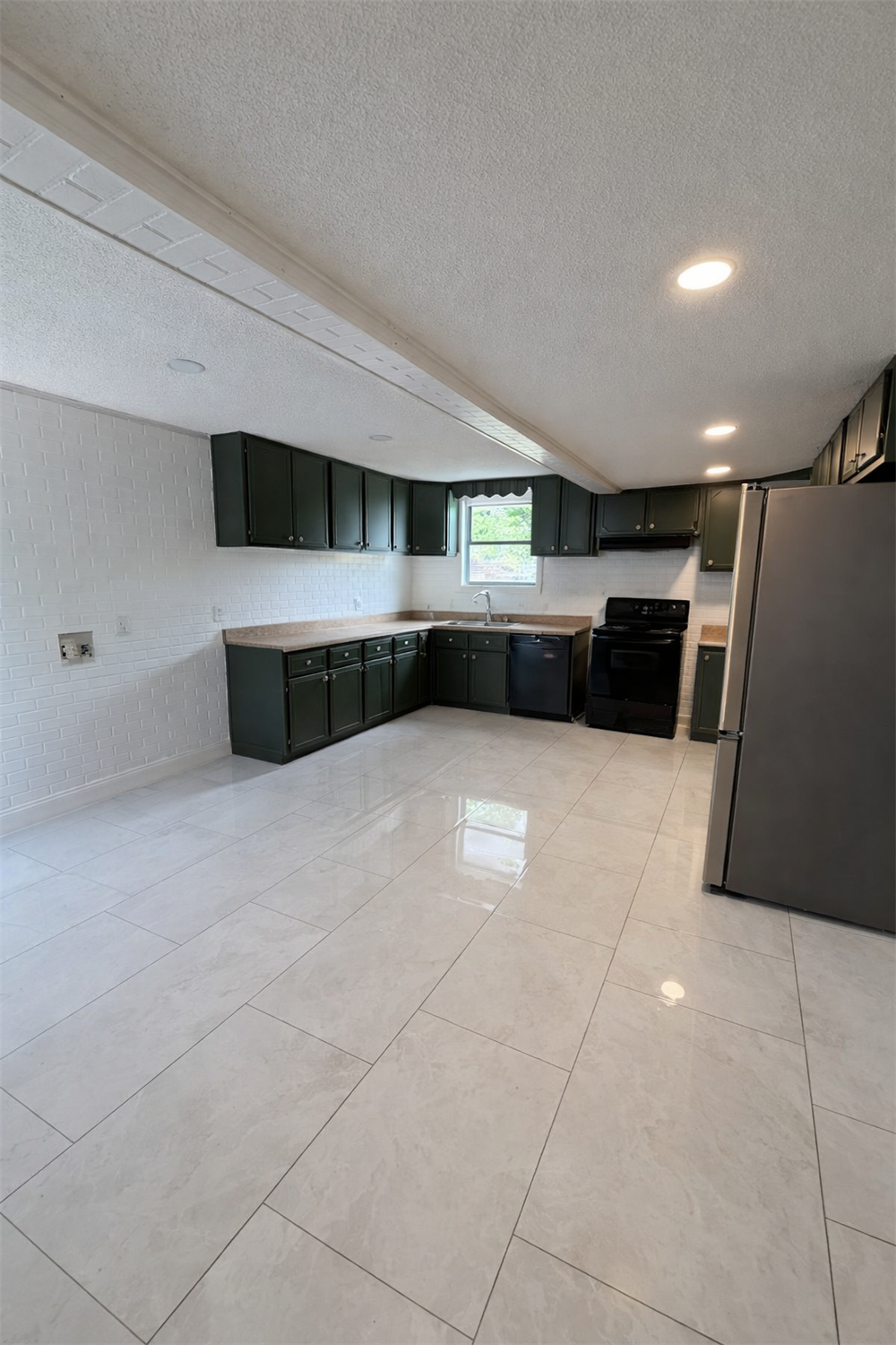 Kitchen with stove, dishwasher, and refrigerator