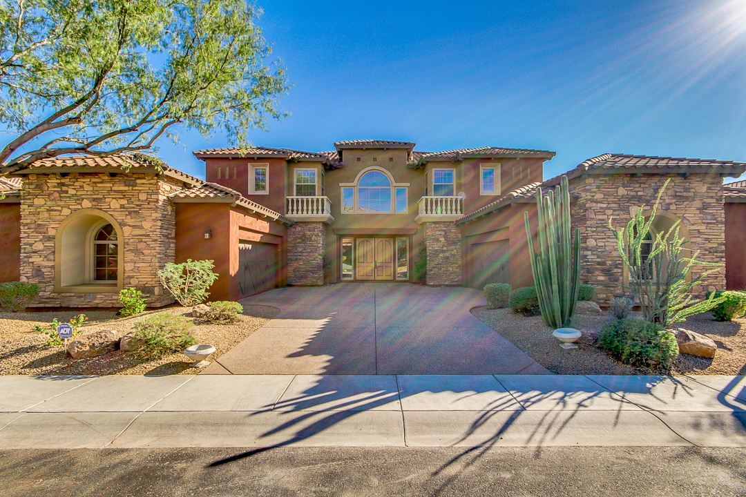 SELLER MOTIVATED!! Cash offers preferred. Highly desired Mirador floor plan with elegance, privacy and sophistication combined. Classy Tuscan design features a double stairway entry. Entertain beneath the soaring vaulted ceilings: cook for 2 or 20 in the well appointed gourmet kitchen: granite counter tops, gas cook top, double ovens, upgraded appliances and formal dining. An opulent master suite upstairs with 17x10 sitting area and two walk in closets, full guest suite on main level. Backyard oasis fully equipped with built-in BBQ, wood-fired Pompeii Oven, private pool and plenty of shade.
