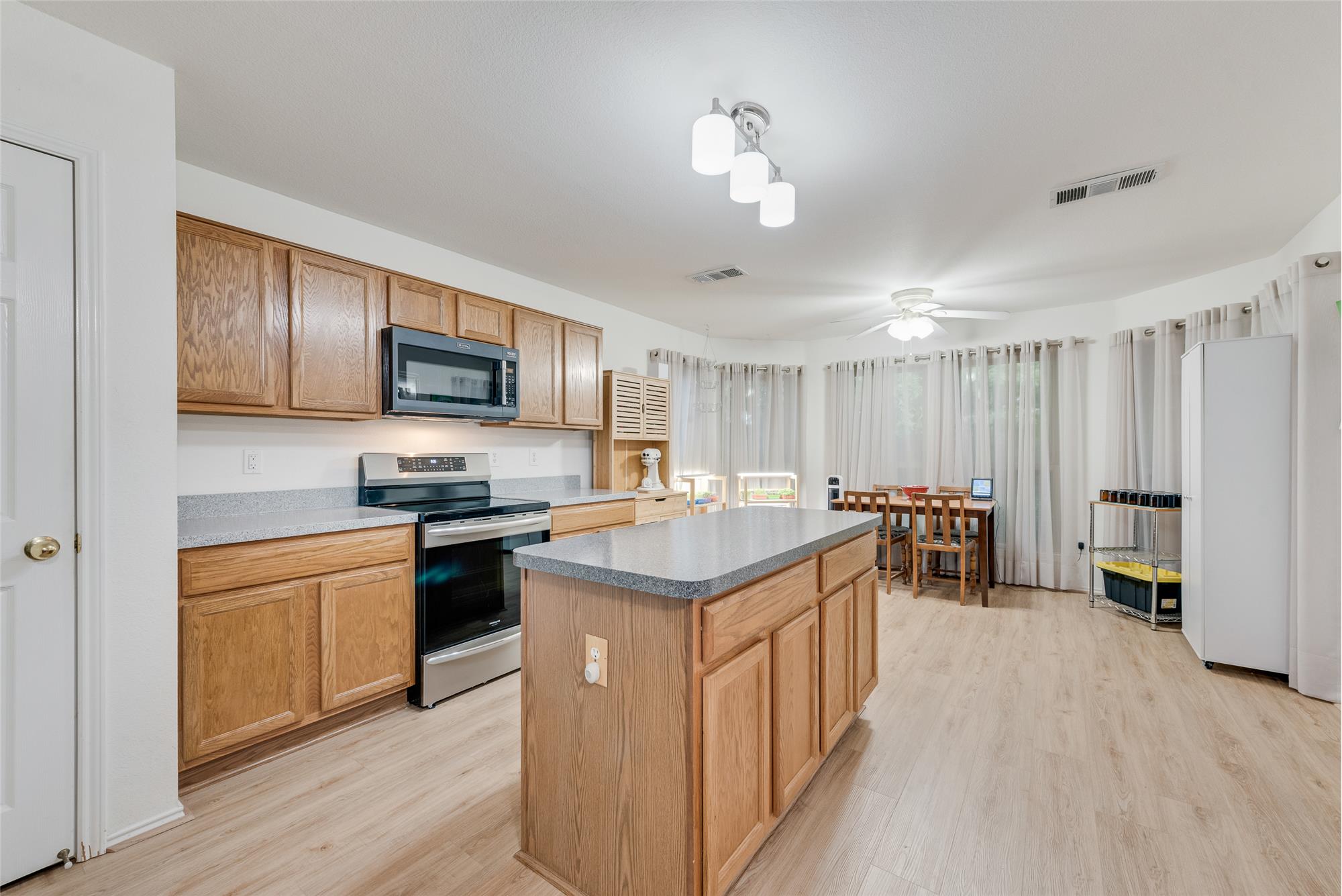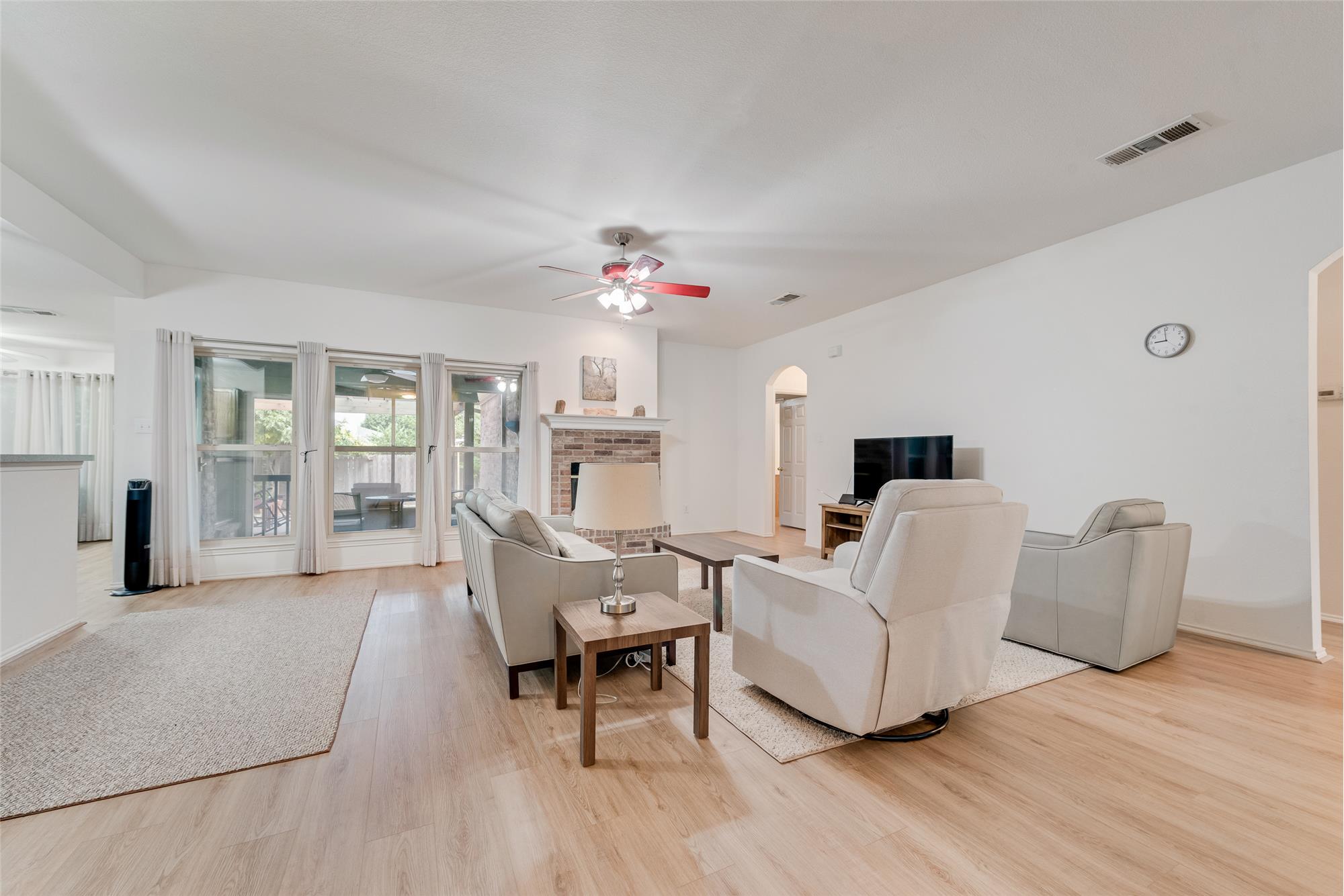 Located right off of Butcher Rd, you can quickly access hwy 77 and go on to I35, restaurants, shopping, etc. Butcher Rd is busy during the normal time when people leave and come home from work, but outside of those times has pretty normal traffic patterns. The Seller has never complained about road noise after many years.