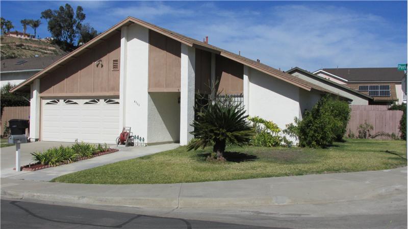 Single Story Gem Near Chollas Creek. This home has 3 bedrooms, 2 baths, almost 1,750 square feet, with an open, flowing, floor plan. An elegant vestibule leads to a stunning Patina glass door that provides a dramatic entrance to the spacious (21x18) living room where you’ll find a ceiling fan, recessed lighting, and a combined formal dining area. Upon entering, the Master Bedroom and Bath are immediately to the right (please note that all bedrooms feature mirrored closet doors). The roomy, sleek, free-flowing kitchen was upgraded about 10 years ago and has oak finished cabinetry, Corian-like counter tops, a stainless steel sink, recessed lighting, and a brick veneer backsplash that wraps behind the counters and refrigerator. On the opposite end of the kitchen (away from the appliances and sink) there’s a built-in work station, more than a full wall of floor-to-ceiling multi-purpose oak finished cabinets AND room to accommodate a four person dining table. The kitchen flows into the family room with its bold wooden vaulted ceiling (& exposed rustic beams), classic floor-to-ceiling brick fireplace, elevated picture window, and ceiling fan. Floors throughout are covered in carpet, ceramic tile or linoleum. All windows are covered with custom blinds. For your year-round comfort there's central air conditioning and heating. The backyard can be accessed via the sliding glass door in the living room that leads to the covered patio where you’ll find cool breezes that seemingly never stop. Square footage of the home’s west side yard is sizable, with concrete walkways and a charming lattice gazebo for extra shade. The south side of the exterior has lush mature shrubbery sitting atop a block retaining wall (including rose bushes). Both the yard and patio provides a quiet relaxing oasison a spacious corner lot! This home is an entertainer's dream! It’s about three (3) minutes from the 94 Freeway, and convenient to banks, coffee houses, supermarkets, restaurants, gas stations, pharmacies, barber/beauty shops, physicians and schools. Perkon Place is served by Oak Park Elementary School, Mann Middle School and Crawford or Lincoln High Schools (this list is not exhaustivethere are also optional schools and private schools available). This home is a must see. It will not last! Property Blog @ www.4966PerkonBlog.com