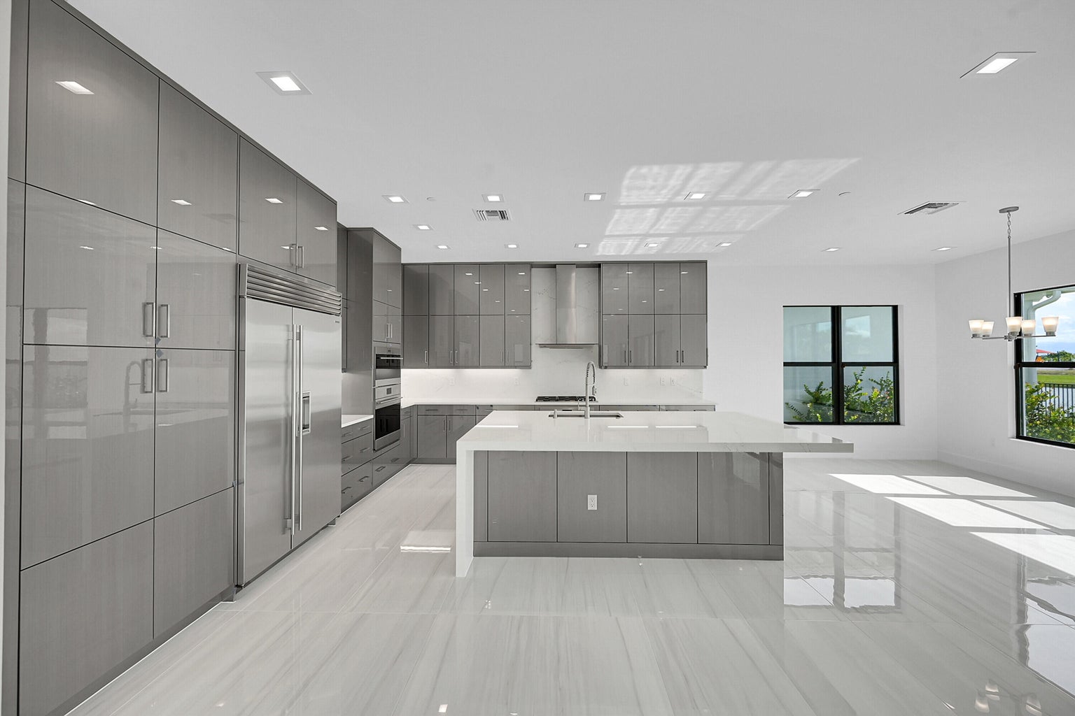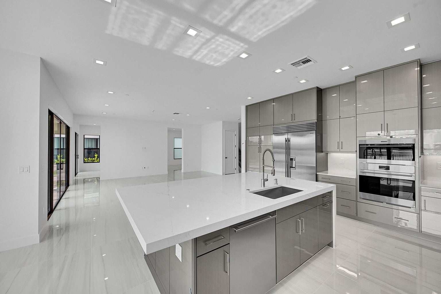 Welcome to Avenir in Palm Beach Gardens, where modern luxury meets resort-style living. This stunning residence features 5 bedrooms, 5 full baths, 2 half baths, a 4-car garage, and a dramatic double-height entry leading to an expansive open floor plan. The chefs kitchen is a true showpiece with Sub-Zero & Wolf appliances, a 3-inch quartz waterfall island, custom cabinetry, walk-in pantry, and designer finishes throughout. 48"x24" porcelain tile floors, solid-core doors, and smooth-finish walls elevate the homes refined aesthetic.