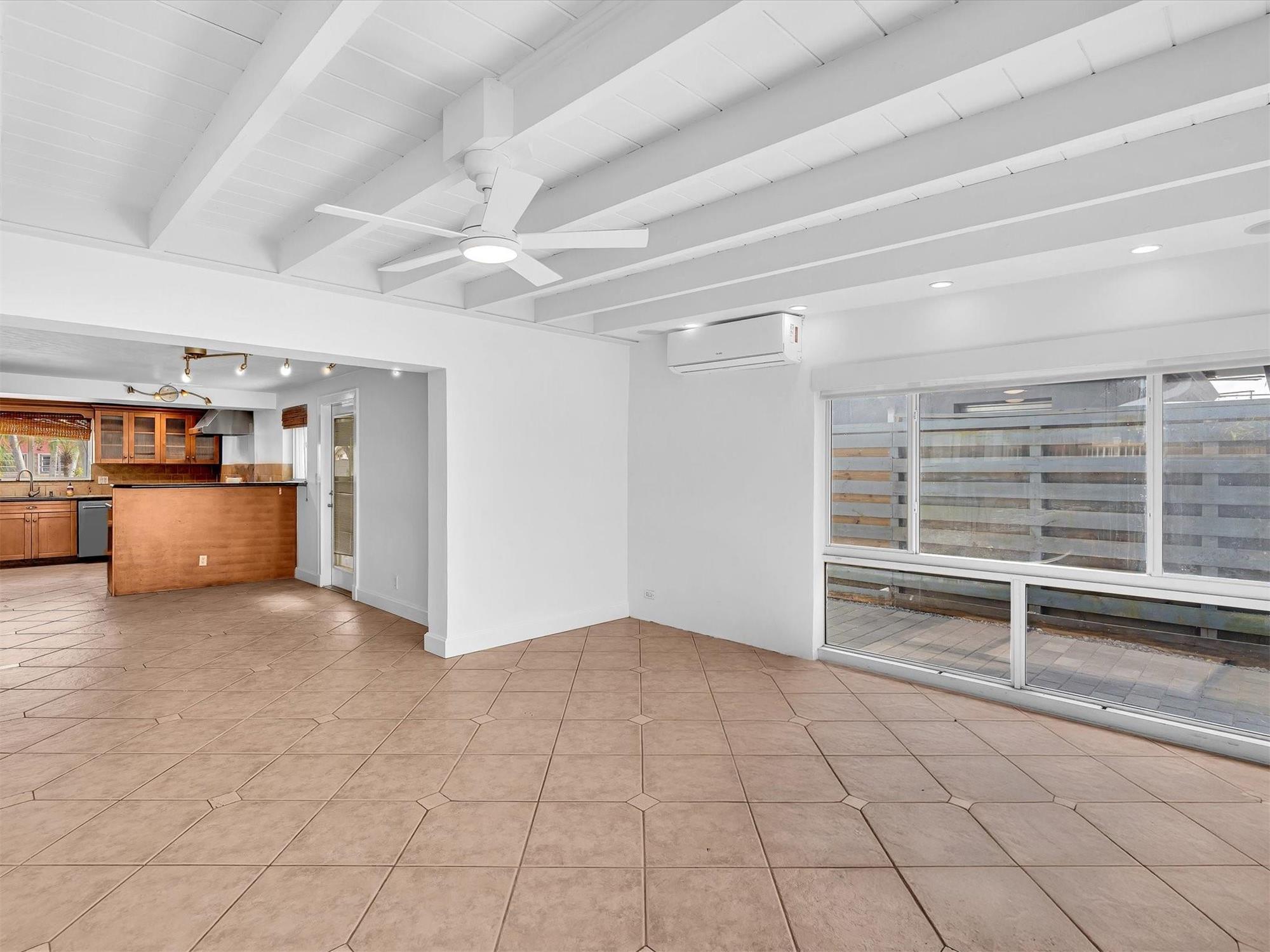 Inside, enjoy 3 bedrooms, 2 baths, and a chef-inspired kitchen featuring a Thermador gas range with griddle, granite countertops, breakfast bar, and stainless steel appliances. Tile and wood flooring throughout complement the stunning hardwood ceilings, adding warmth and character to the home.