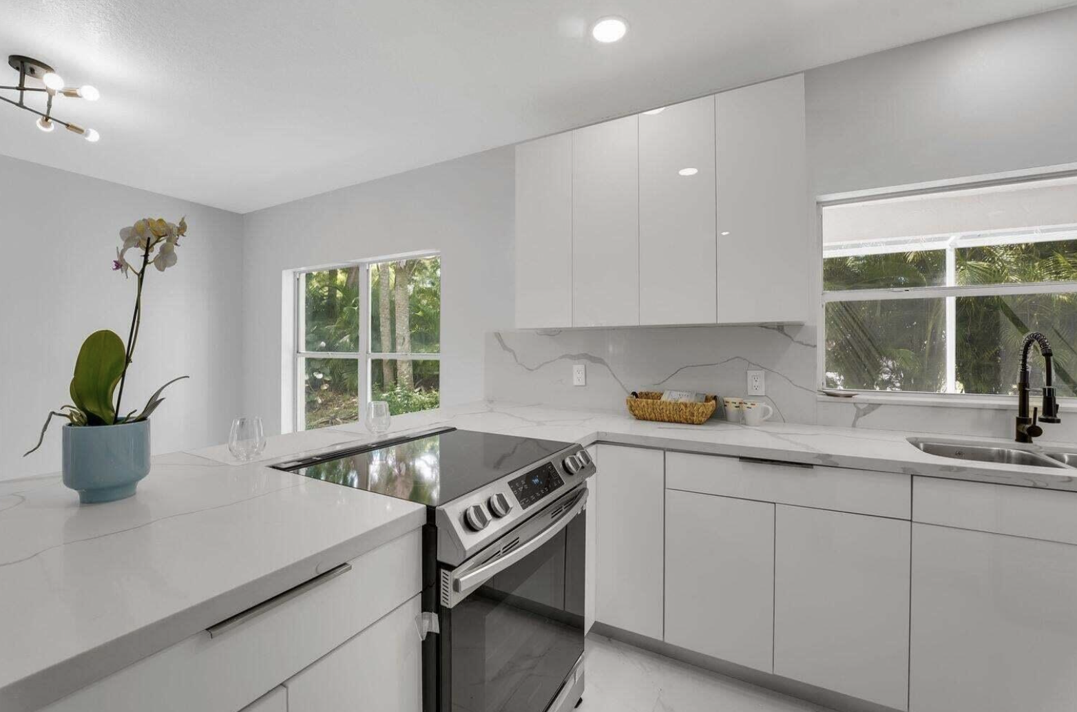 Welcome Home! Renovated 3 bed, 2.5 bath, 2 car garage on cul-de-sac in quiet, gated community for annual lease. Kitchen equipped with stainless steel appliances, quartz counter tops, white cabinets, full pantry, eat-in bar, & open to both formal dining room & TV/living area. Great views of the screened in, covered patio & garden from all rooms. Stairs, hallways, & all 3 bedrooms offer laminate flooring with neutral tile downstairs. Primary is upstairs & has vaulted ceilings, walk-in closet, plus massive en-suite bath. Enjoy a soaking tub, separate shower, floating vanities, & elegant tile work. 1/2 bath downstairs will impress any guest. Second bath upstairs, for beds 2 & 3, features custom tile, shower & superb vanity. NEW Window treatments just installed for privacy & convenience!